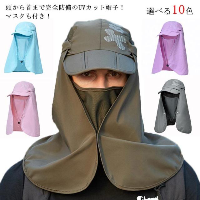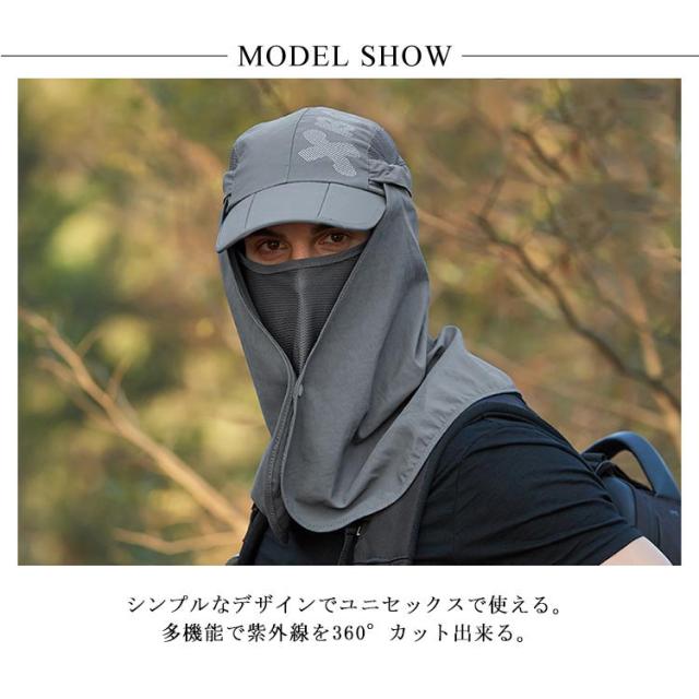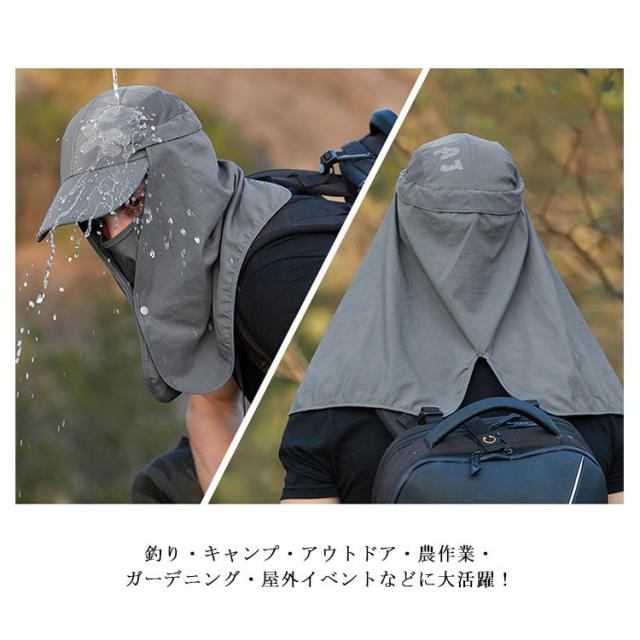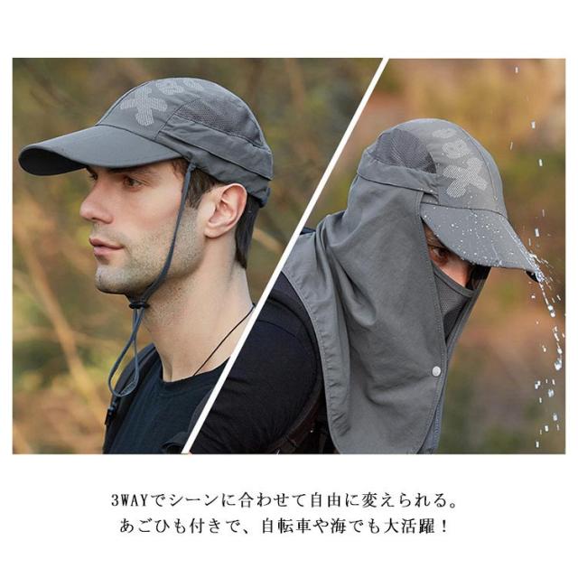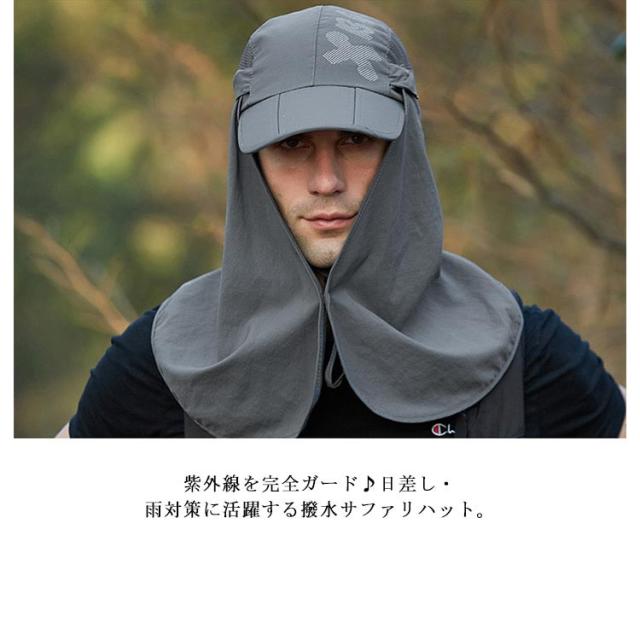 UVカット メンズ 日よけ帽子 紐付き フェイスガード 送料無料帽子 ネックガード 吸汗速乾 取り外し可能 360度UV対策 日除け 紫外線対策 サファリハット 送料無料帽子 ネックカバー 折りたたみ キャップ