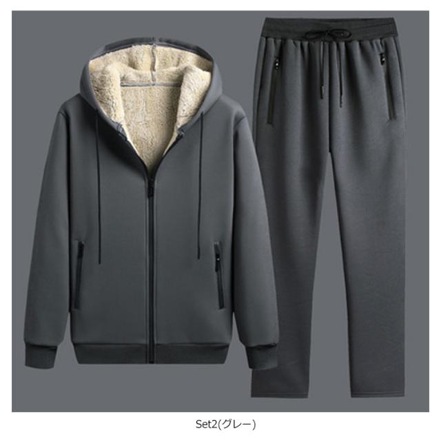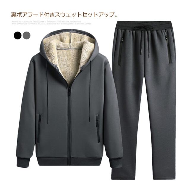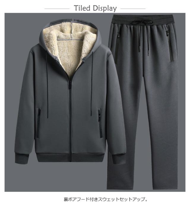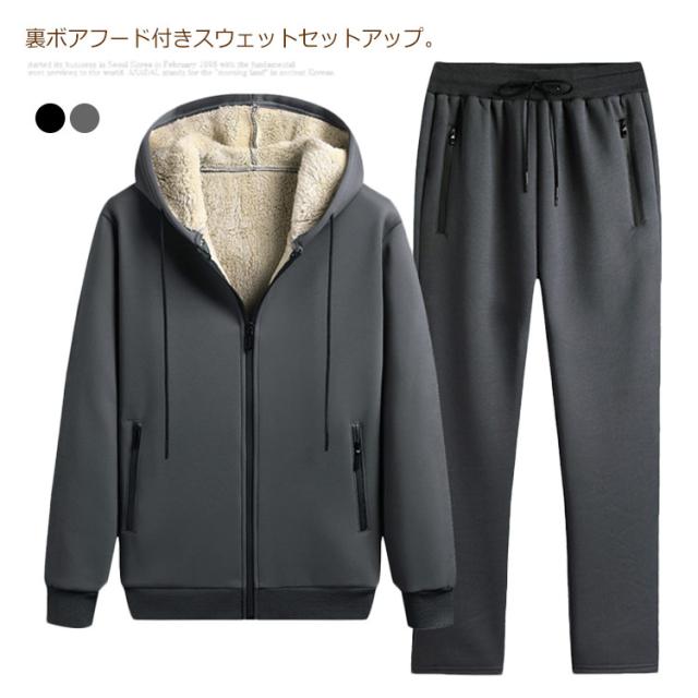 スウェット ジップパーカー セットアップ スエット スポーツウェア ジャージ 二点セット スウェット 裏起毛 裏ボア フード付き あったか 大きいサイズ 20代 30代 メンズ