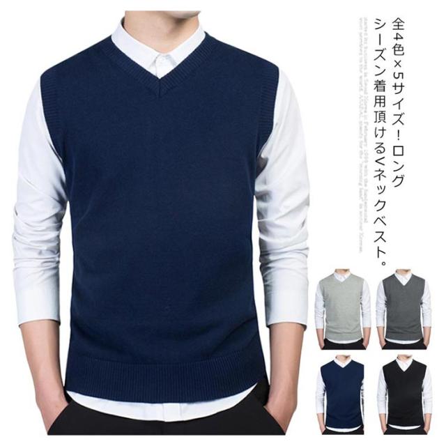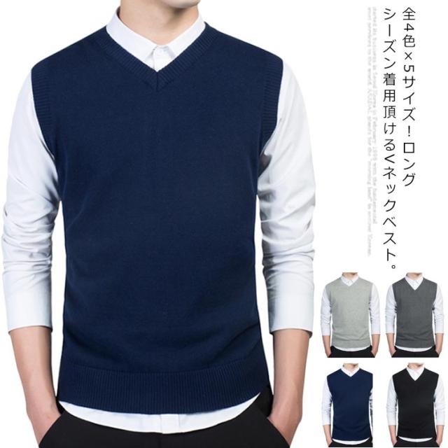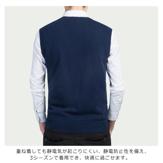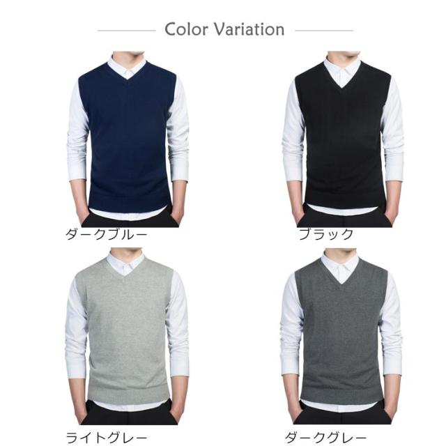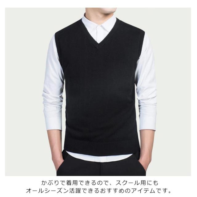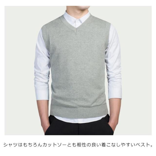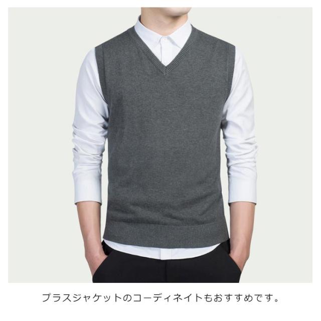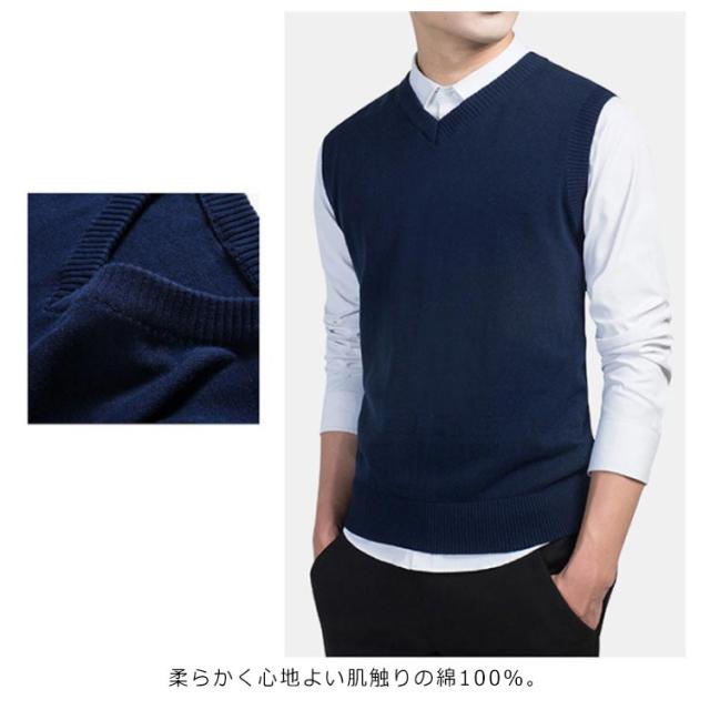 ニットベスト チョッキ メンズ コットン100% ベスト トップス 送料無料 Vネック レイヤード ビジネス スクール 洗える ニット 通勤 送料無料 春 通学