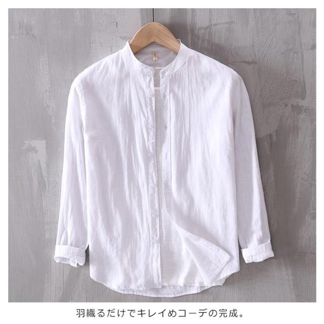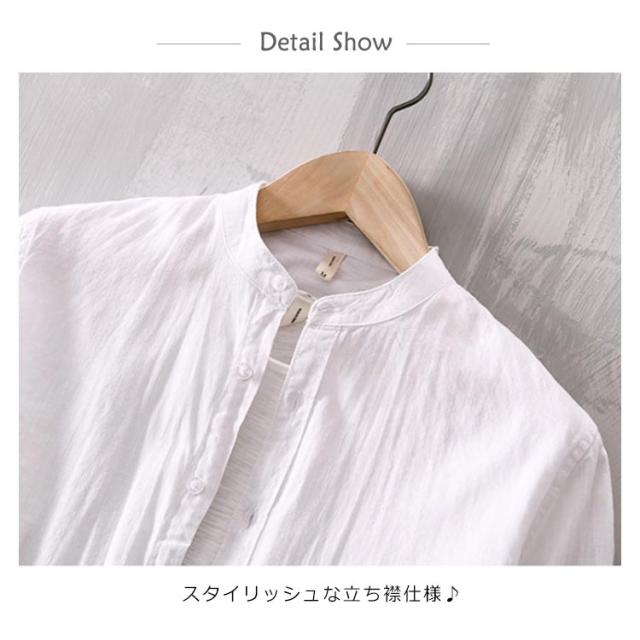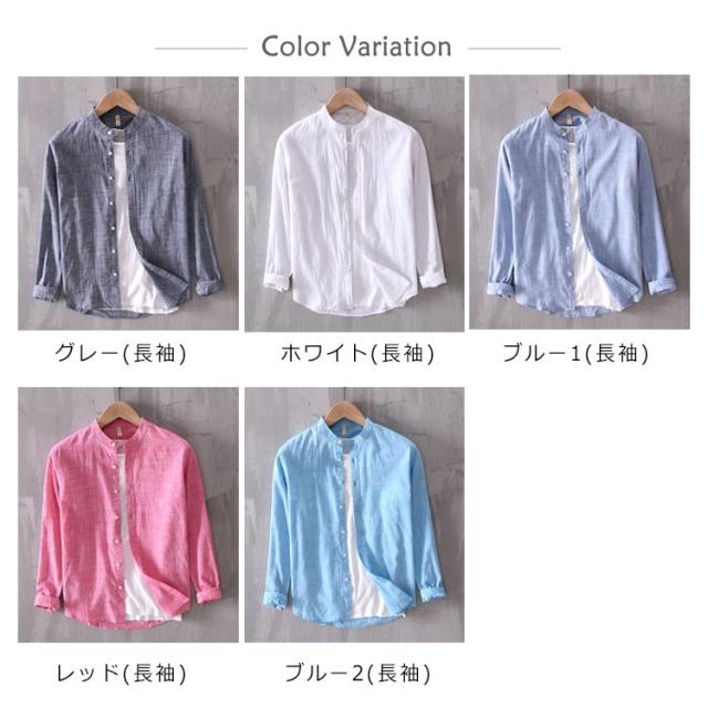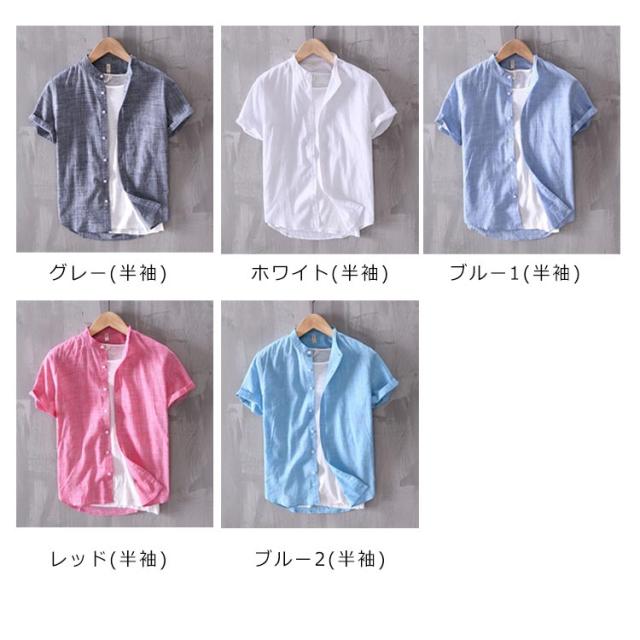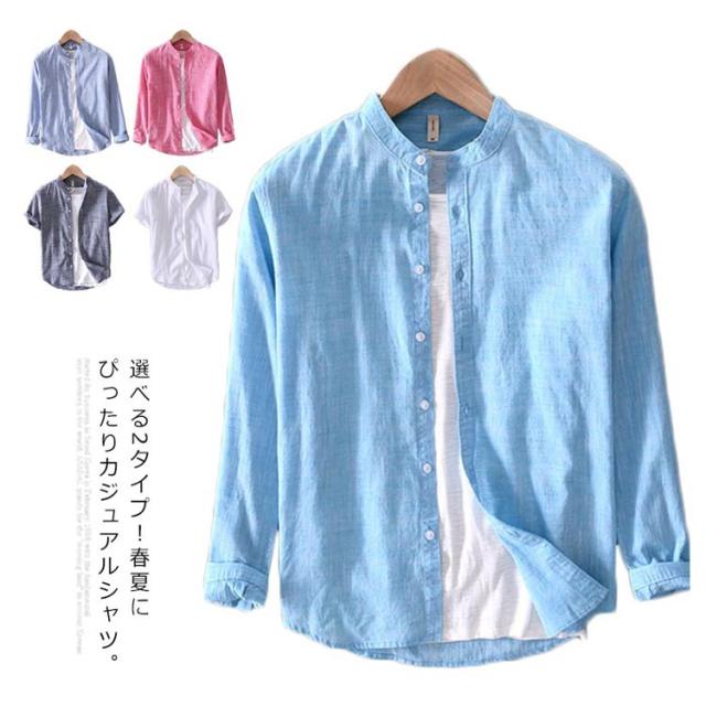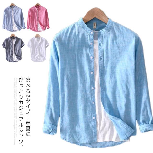 カジュアルシャツ トップス 半袖シャツ メンズ 立ち襟 ブラウス 羽織り 送料無料 コットン カジュアルブラウス 半袖ブラウス 羽織 長袖シャツ 選べる2タイプ!シャツ 無地 薄手 送料無料 綿 大きいサイズ おしゃれ シンプル 長袖ブラウス