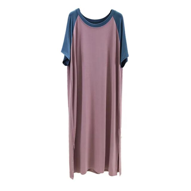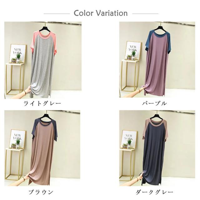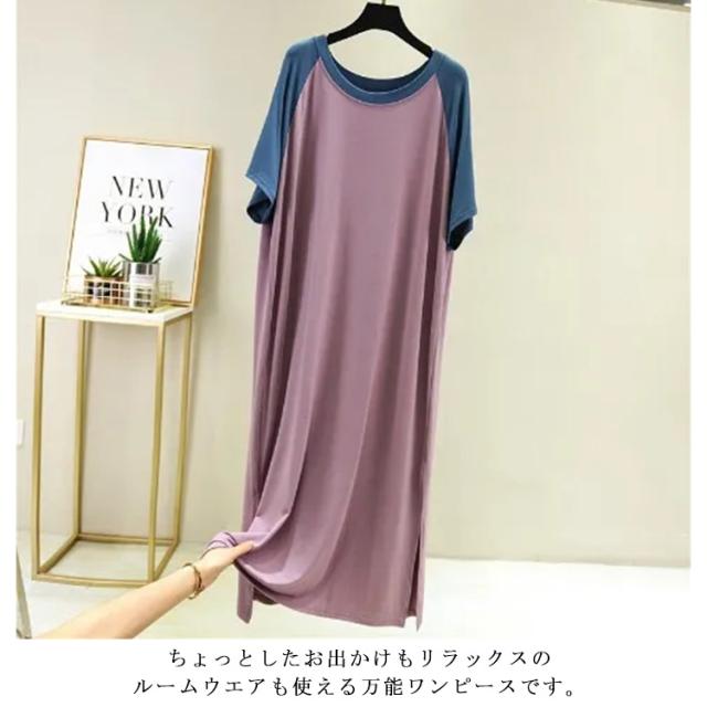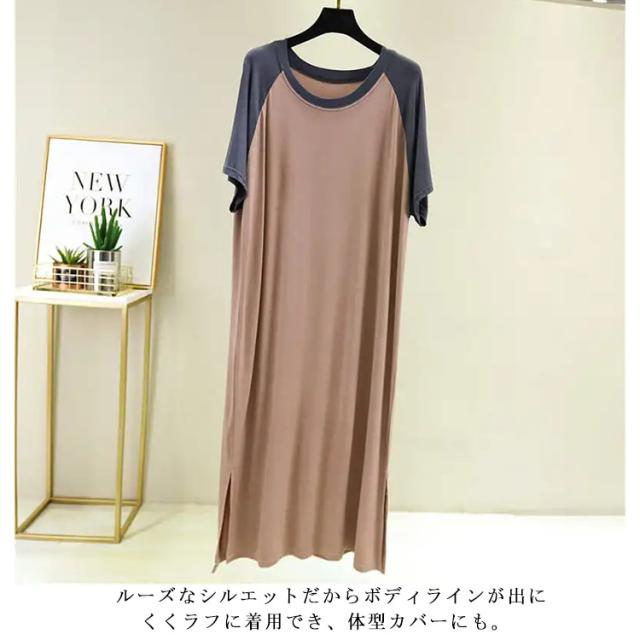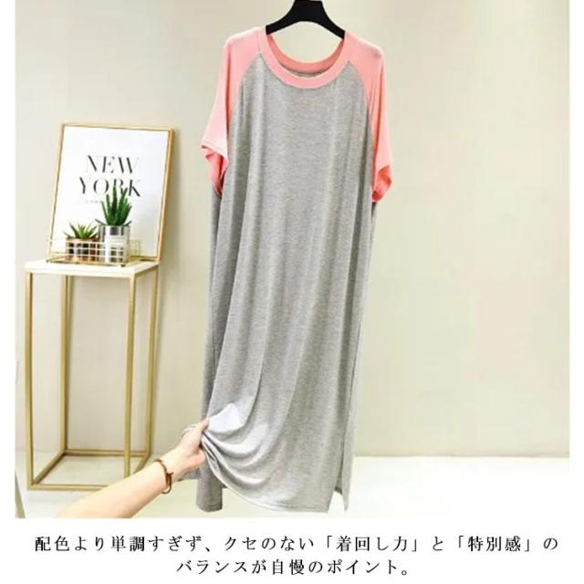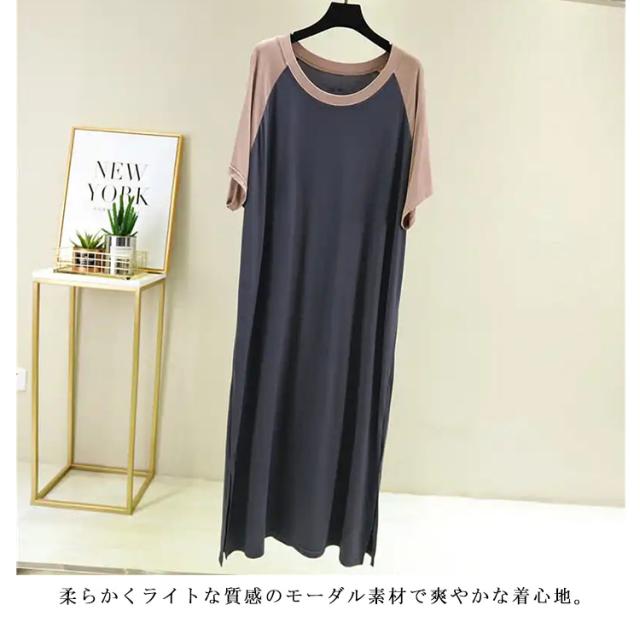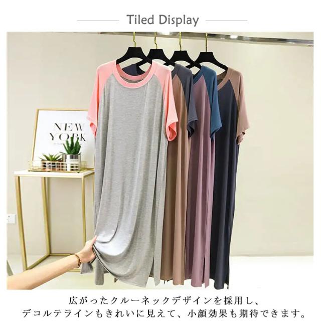 送料無料 部屋着 パジャマ 半袖 ルームウエア 送料無料 Tシャツワンピース ワンピース Uネック クルーネック リラックス 薄手 スリット入り 大きサイズ 夏 春夏 カジュアルワンピース