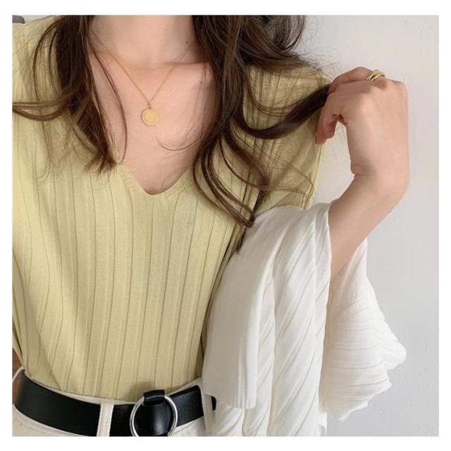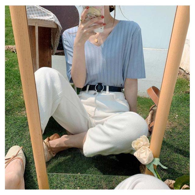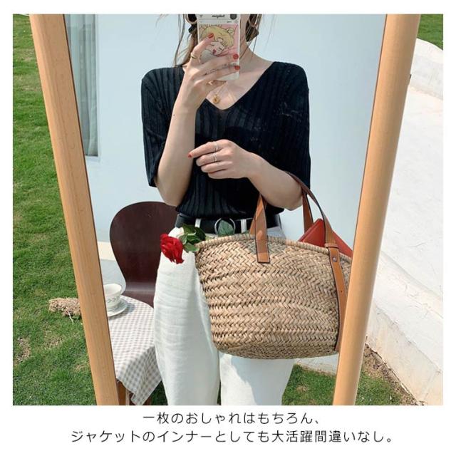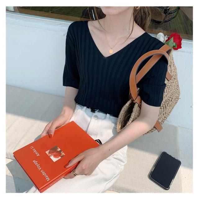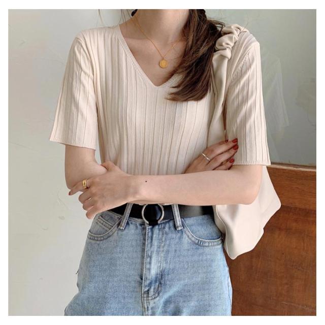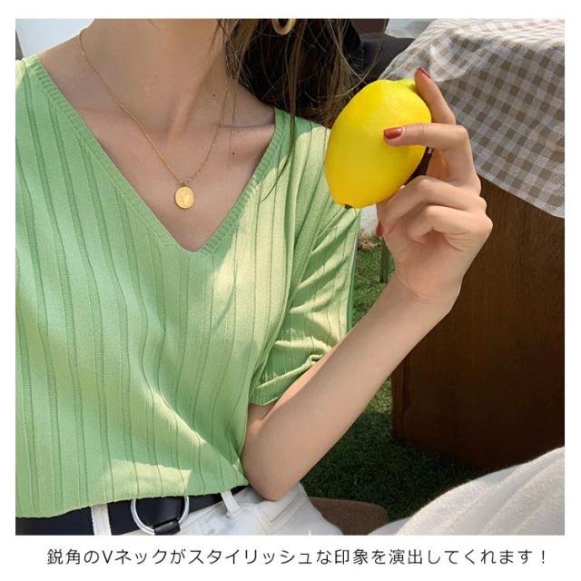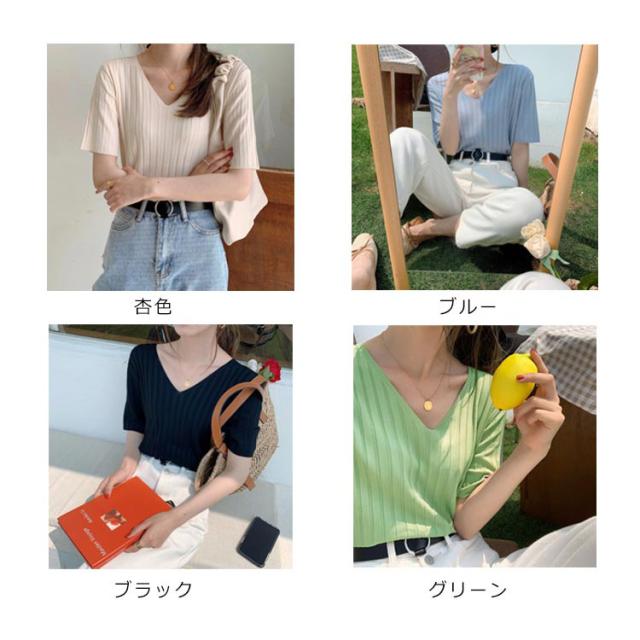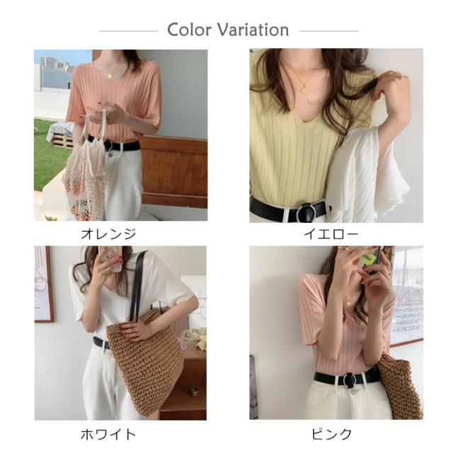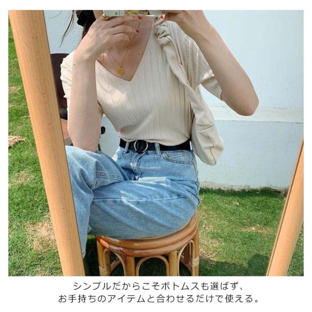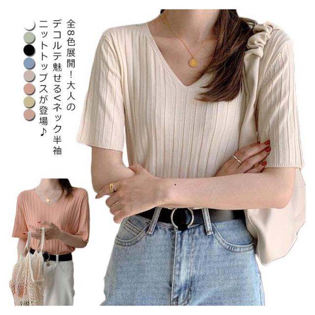 送料無料 送料無料 レディース ニットトップス Vネック 半袖 サマーニット リブ 無地ニット トップス サマー シンプル 全8色!半袖ニット
