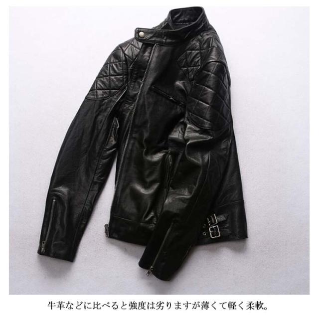 | サイズについての説明 | サイズ:単位cm/kg S 着丈61 肩幅43 バスト100 袖丈60 適応体重52.5-57.5 M 着丈62 肩幅44 バスト104 袖丈61 適応体重57.5-65 L 着丈63 肩幅45 バスト108 袖丈62 適応体重65-72.5 XL 着丈64 肩幅46 バスト112 袖丈63 適応体重72.5-80 2XL 着丈65 肩幅47 バスト116 袖丈64 適応体重80-87.5 3XL 着丈66 肩幅48 バスト120 袖丈65 適応体重87.5-95 4XL 着丈67 肩幅49 バスト124 袖丈65 適応体重95-102.5 5XL 着丈68 肩幅50 バスト128 袖丈66 適応体重102.5-110 (取り扱いの注意) 1.軽い汚れは、柔らかい布で拭いてください。 2.頑固な汚れは、柔らかい布に革製衣料専用のクリーナーを少量つけて拭き取り、その後乾いた布でから拭きします。皮によってはクリーナーが合わず色落ちやシミになる場合があるので、目立たないところでテストしてからご使用ください。 |