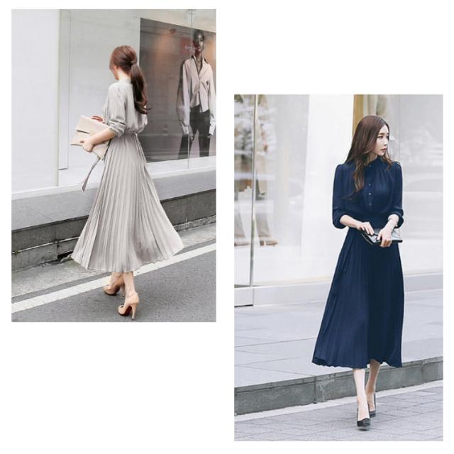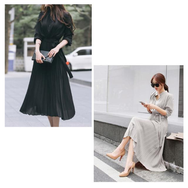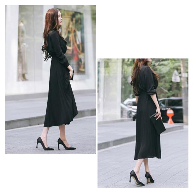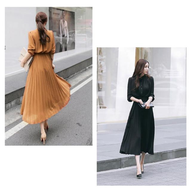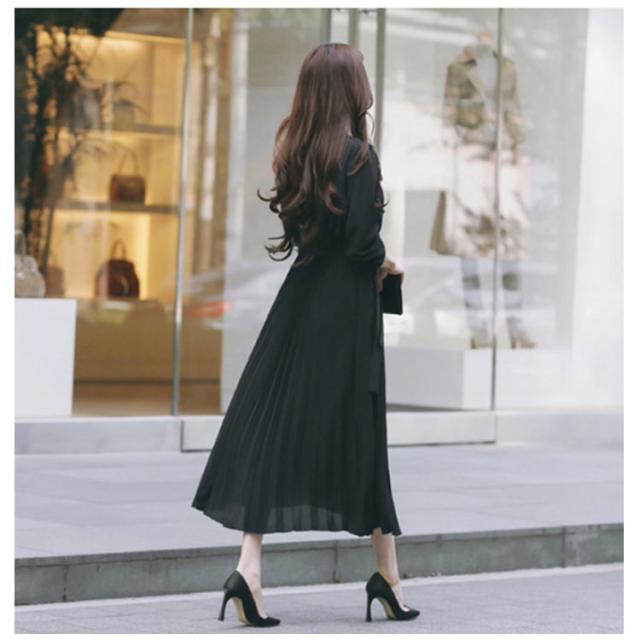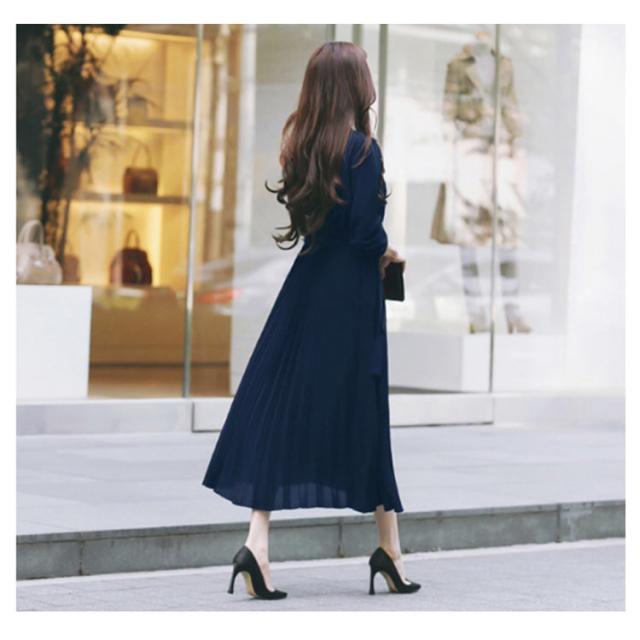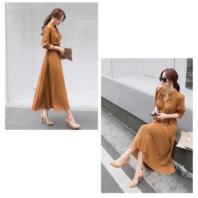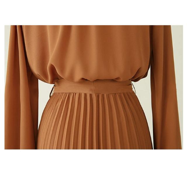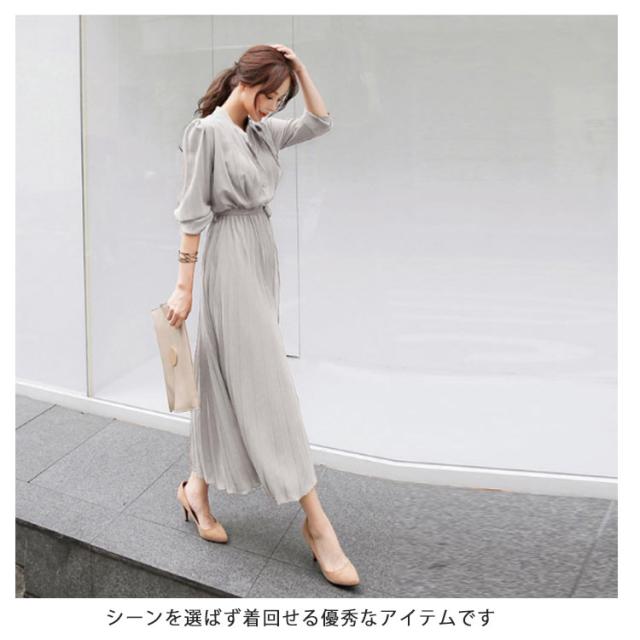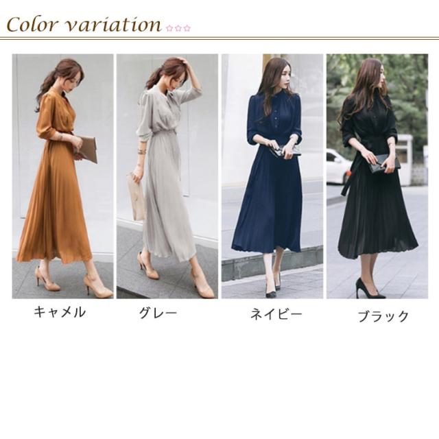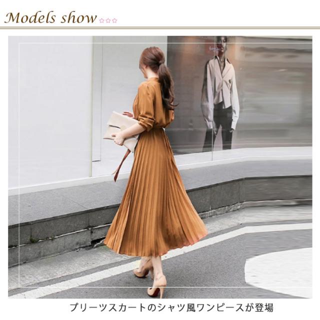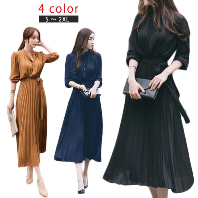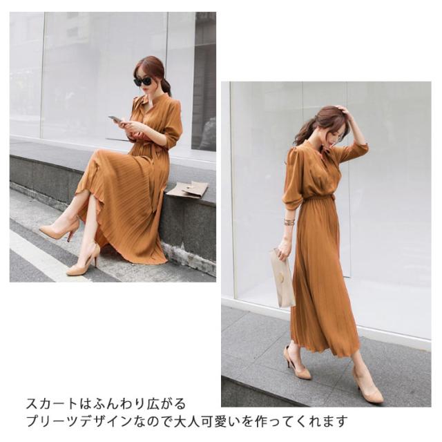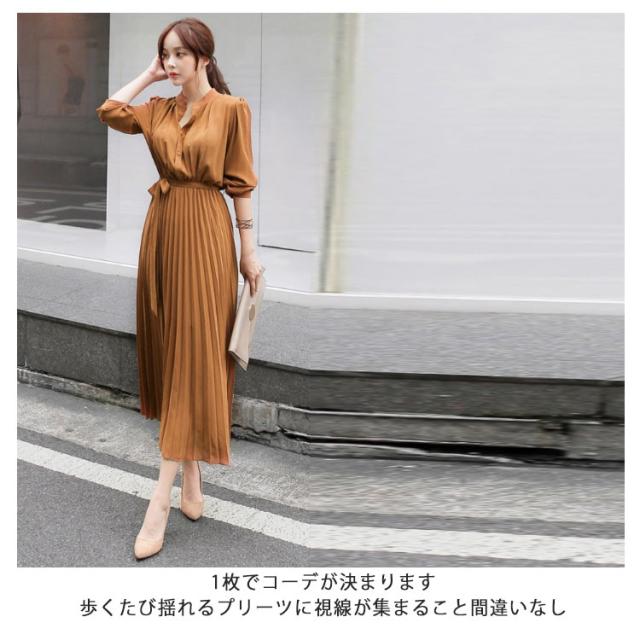 シフォン シンプル ウエストゴム ワンピ ワンピース ウエストベルト付き 長袖 フレンチスリーブ プリーツワンピース フレア Aライン ワンピース ロング丈 無地 プリーツワンピース エレガント 着回し 春夏秋 レディース