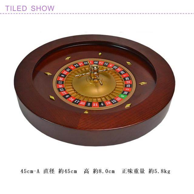 | サイズについての説明 | ルーレットサイズ: 45cm-A 直径 約45cm 高 約8.0cm 正味重量 約5.8kg 46cm-B 直径 約46cm 高 約7.3cm 正味重量 約5.4kg ※本用品は家庭用として健全に遊ぶための商品であります。賭博行為は法律違反ですので絶対に行わないで下さい。もし、賭博行為などされて何らかの損害やトラブルが生じても、弊社では一切の責任を負いかねますのでご了承下さい。 |