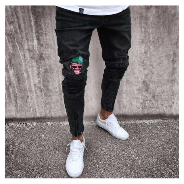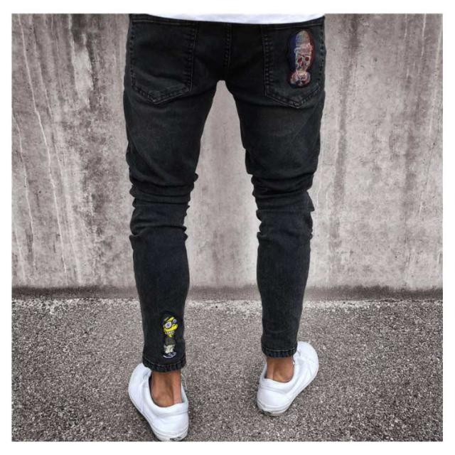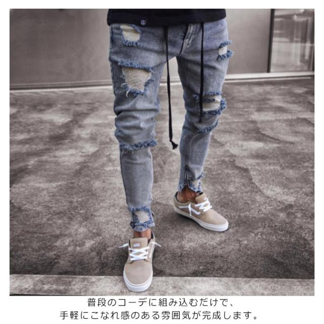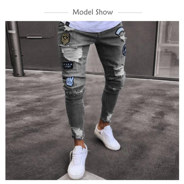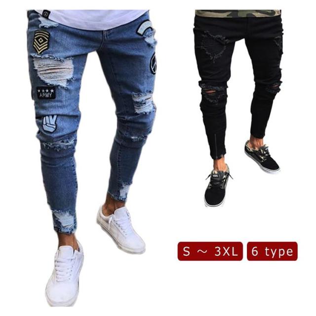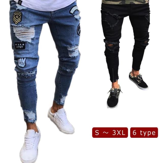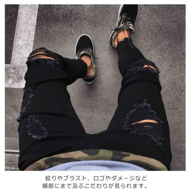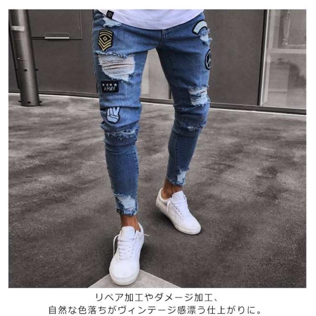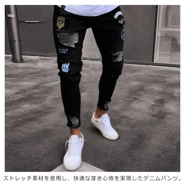 ダメージ デニムパンツ マルチネーム リペア メンズ メンズ ダメージデニム ロゴ刺繍 スキニーデニムパンツ ストリート系 ストレッチデニム ダメージパンツ デニムパンツ カジュアル ダンス ウェア B系 HIPHOP ジーンズ