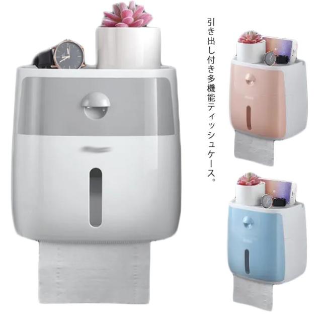 ティッシュケース 壁掛け ティッシュボックス 多機能 トイレットペーパーホルダー スマホスタンド トイレ収納ラック ティッシュケース トイレットペーパー 収納 引き出し付き