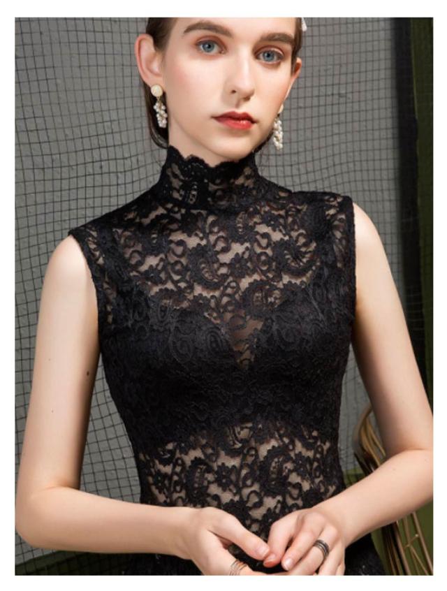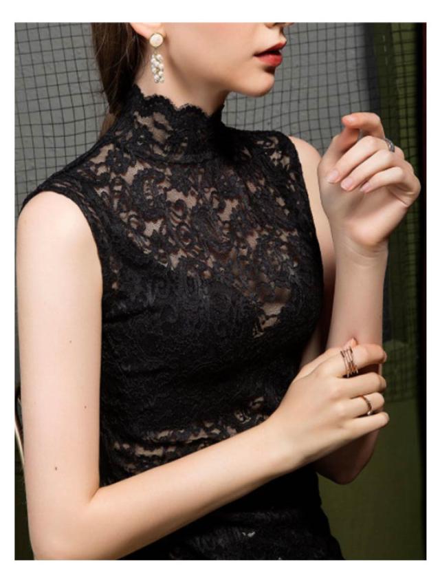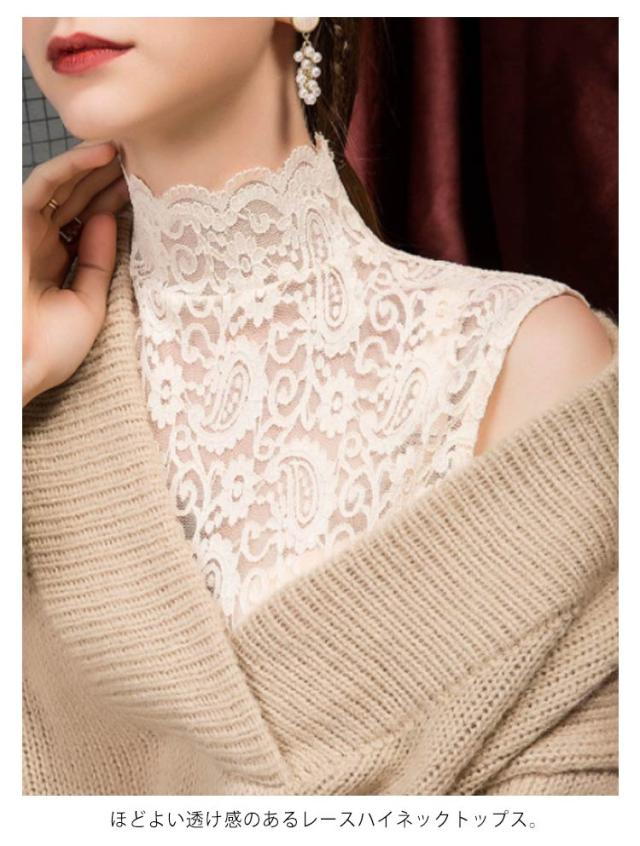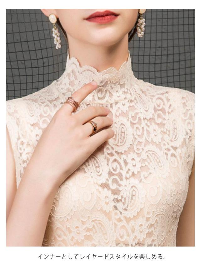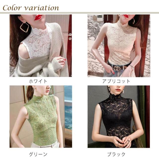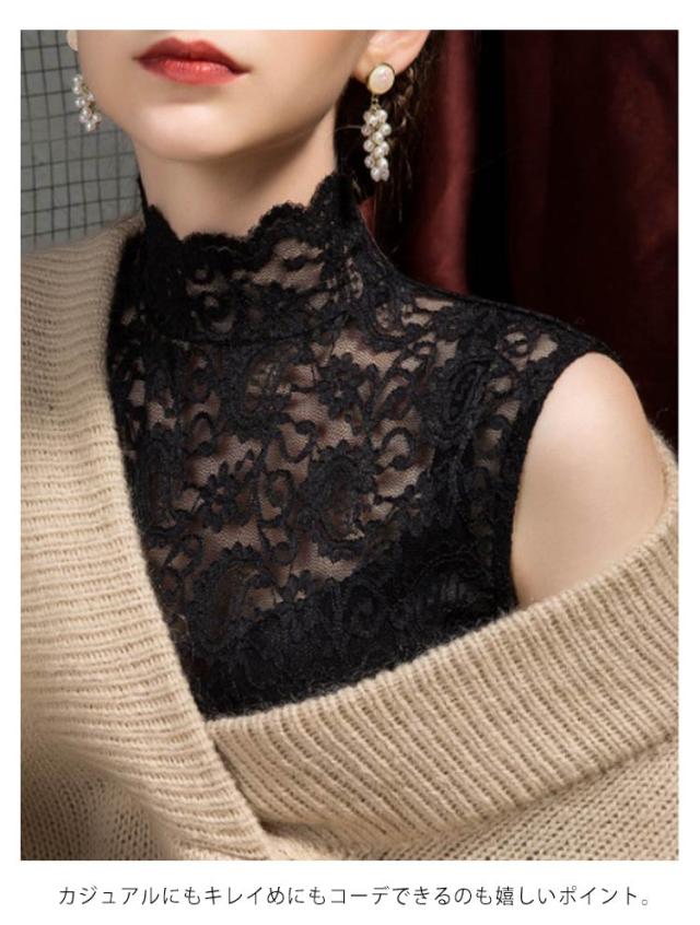 シアートップス レディース レース タンクトップ ハイネック ノースリーブ 透け感 トップス 送料無料 インナー 薄手 花柄 刺繍 レース レイヤード 重ね着 かわいい カジュアル きれいめ おしゃれ かわいい 春夏秋冬