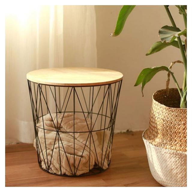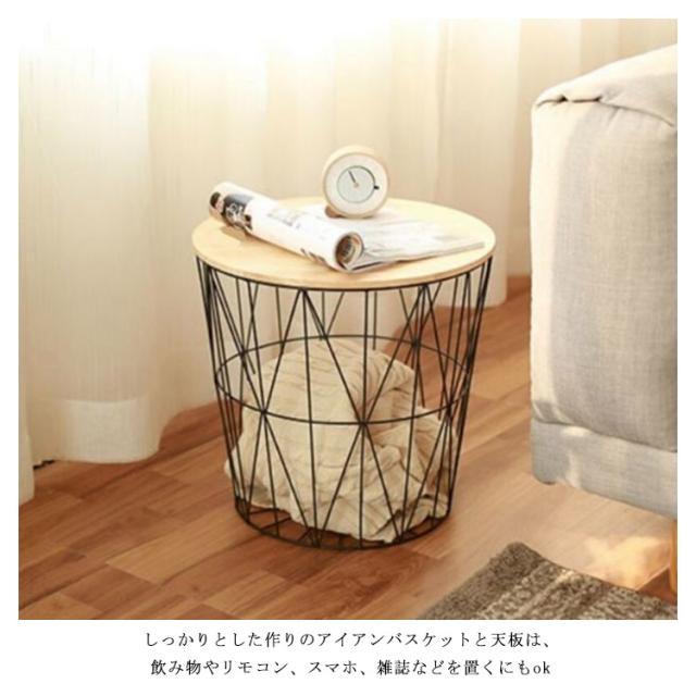 蓋付き ミニテーブル バスルーム 丸型 カゴ 円形 モダン 収納 ナイトテーブル イス バスケット サイドテーブル 寝室 ベットサイドテーブル 木製 丸い テーブル 雑物収納 小物入れ 衣類 おもちゃ 収納 ワイヤー 蓋 ワイヤーバスケット シンプル サイドテーブル リビング
