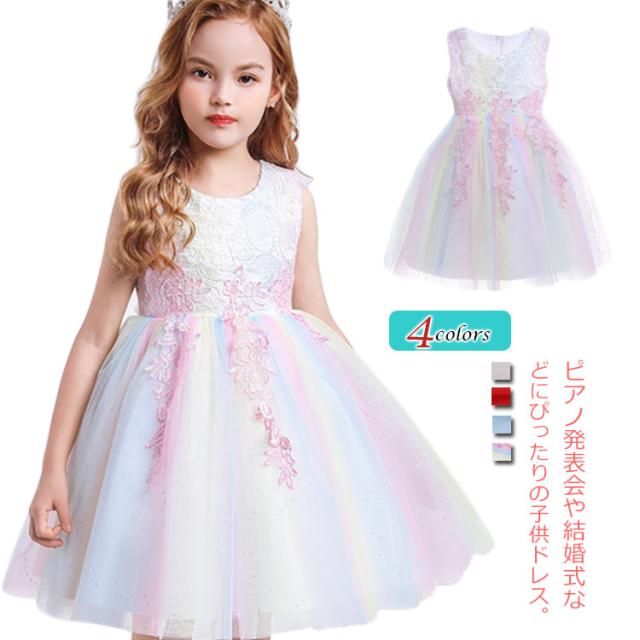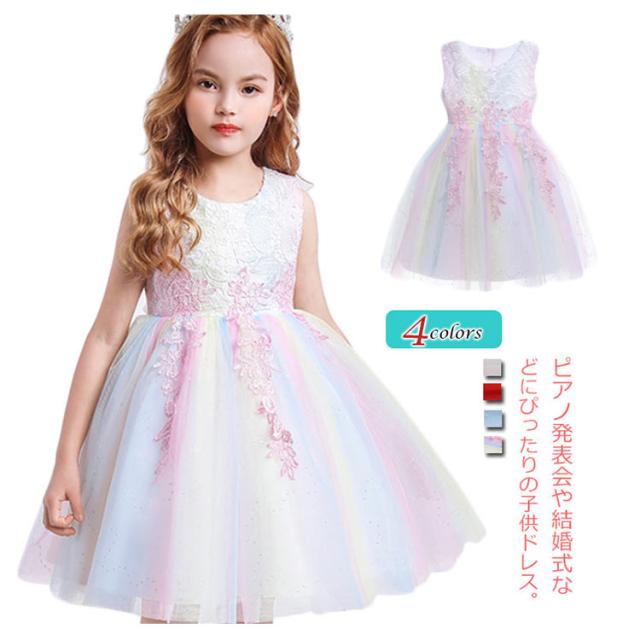- 絵本に出てきた虹のドレスがお気に入りで、クリスマスプレゼントにリカちゃんの虹のドレスをプレゼントしたけど、子どもが着れる虹のドレスもあるんじゃないかとおもい探していました。 かわいいし、子どもも気に入っています。 届いて開けて特にシワもなくそのまま着せられました。 着ているとどうしてもスカート部分のスパンコール?が1つ2つ減っていきます。 上の部分は背中側も刺繍?があるので安っぽくテロンとしていないので値段より高見えドレスだとおもいます。