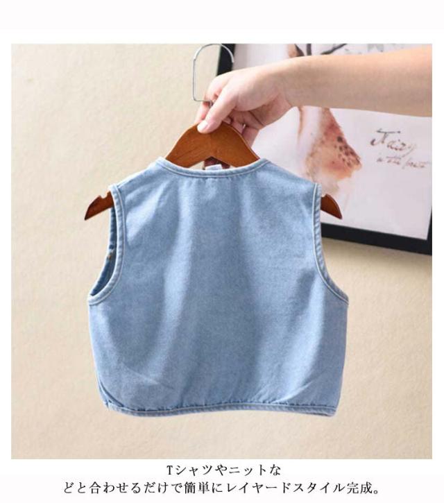 ベスト 120 デニムベスト 送料無料 子供服 90 100 110 80 130cm 女の子 男の子 送料無料 ポケット付き コットン 韓国 キッズ ギフト 可愛い 保育園 ベビー服