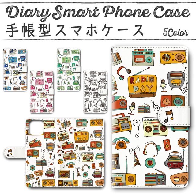 スマホケース スマホ ケース スマホカバー スマホ カバー 手帳型 iPhone13mini (5.4inch) 対応 送料無料 ラジオ レトロ イラスト / dc-800