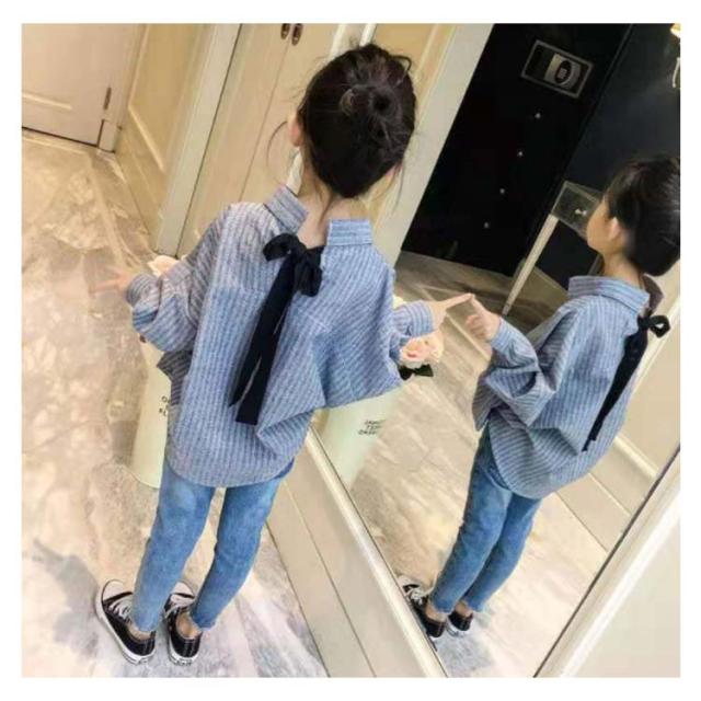 チェック柄 オシャレブラウス ロングブラウス 長袖 キッズ ゆったり ロングシャツ ロングブラウス 子供服 アウトー リボン コットン 送料無料 シンプル カジュアル オシャレ 春秋 女の子シャツ キッズ