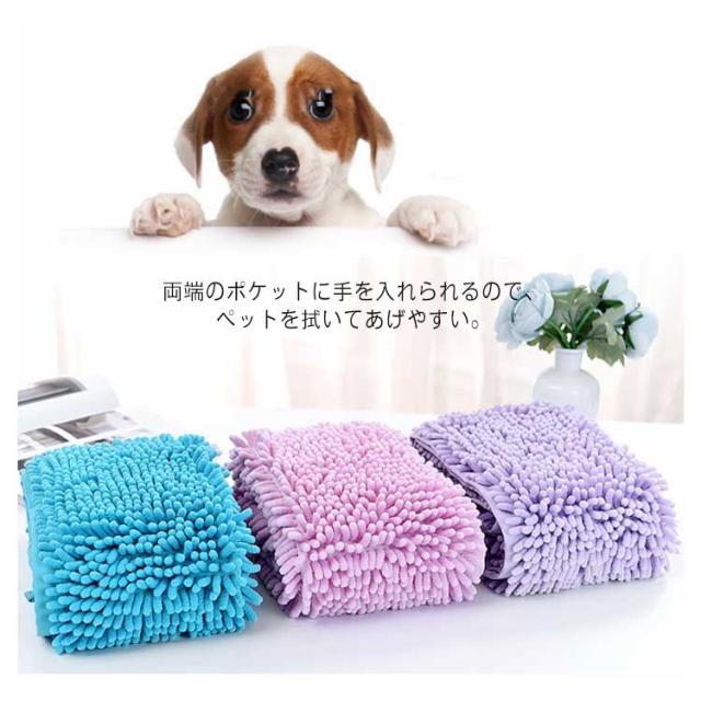 送料無料 猫 シャンプー バスタオル ペット 超速乾 35x80cm お風呂 シャワー タオル 吸水力7倍 犬 ふわふわ ドライタオル マイクロファイバー お散歩 足拭き 手差しポケット 使いやすい ペット用品 送料無料