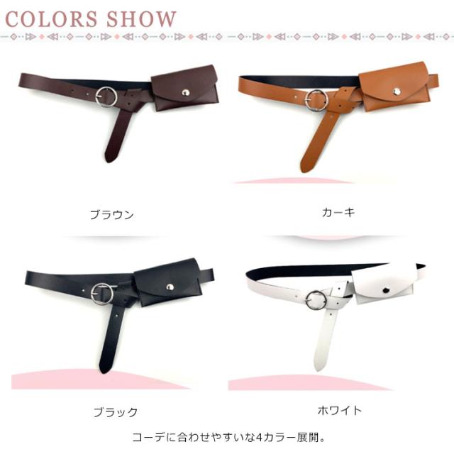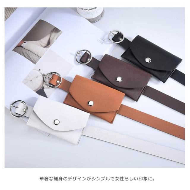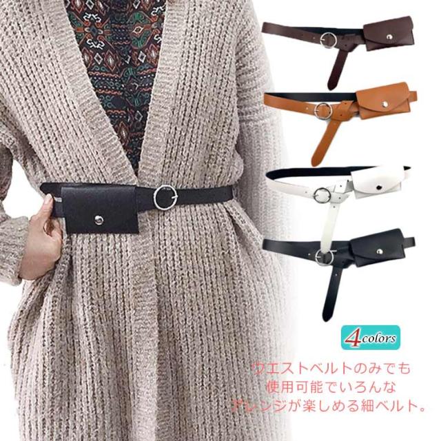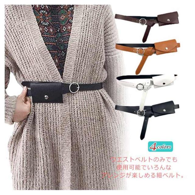 ファッション小物 ベルト レディース 細ベルト PUレザーベルト フェイクレザー 女性用 ウエストバッグ付き ウエストポーチ 小物入れ 飾り アクセサリー お洒落 個性的 ダンス 衣装 コスチューム シンプル 送料無料