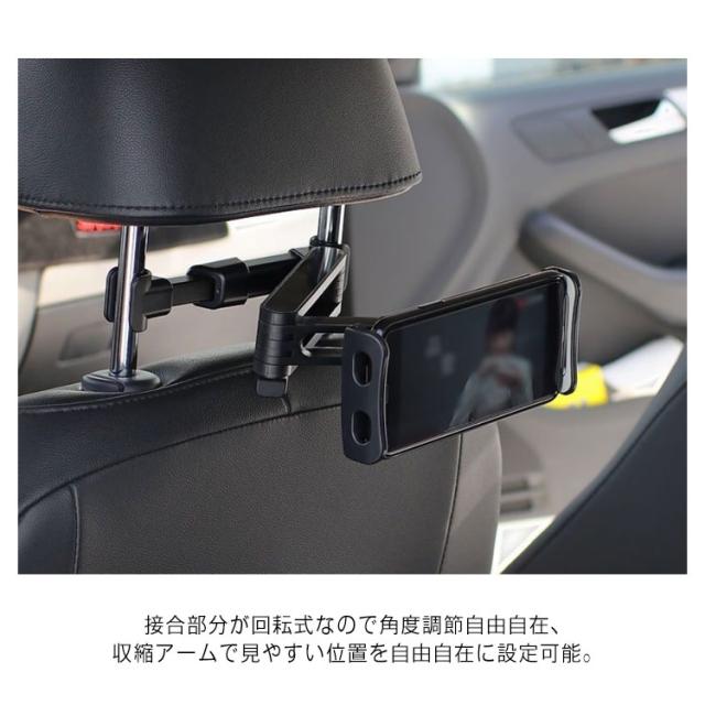 タブレット 車載 後部座席 スマホホルダー タブレットホルダー ヘッドレスト 車載ホルダー スマホ iPad ホルダー 伸縮アームスタンド iPhone/android/iPad タブレットホルダー 360度回転 カー用品 ドライブ 4-12インチ対応種