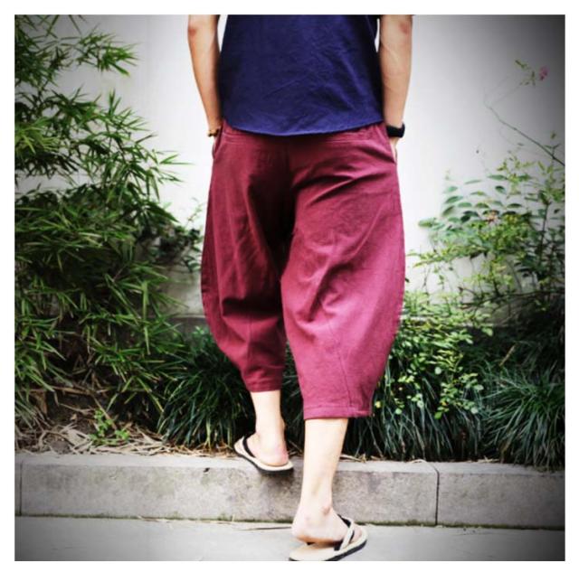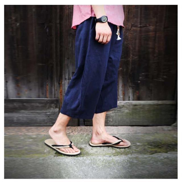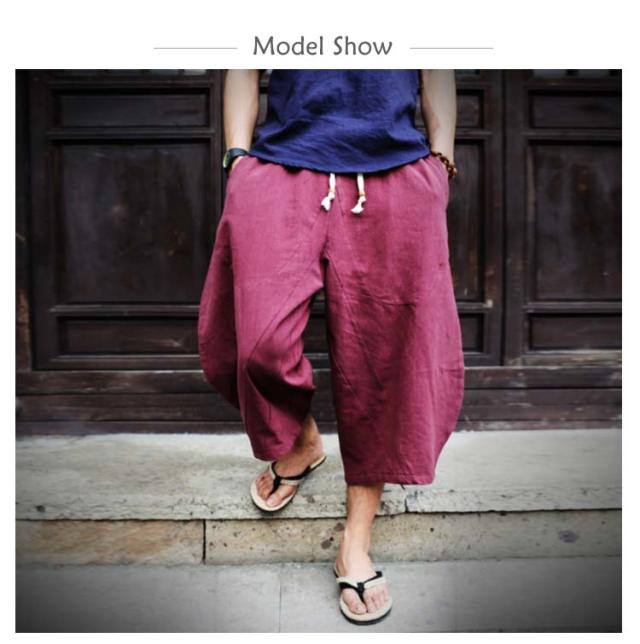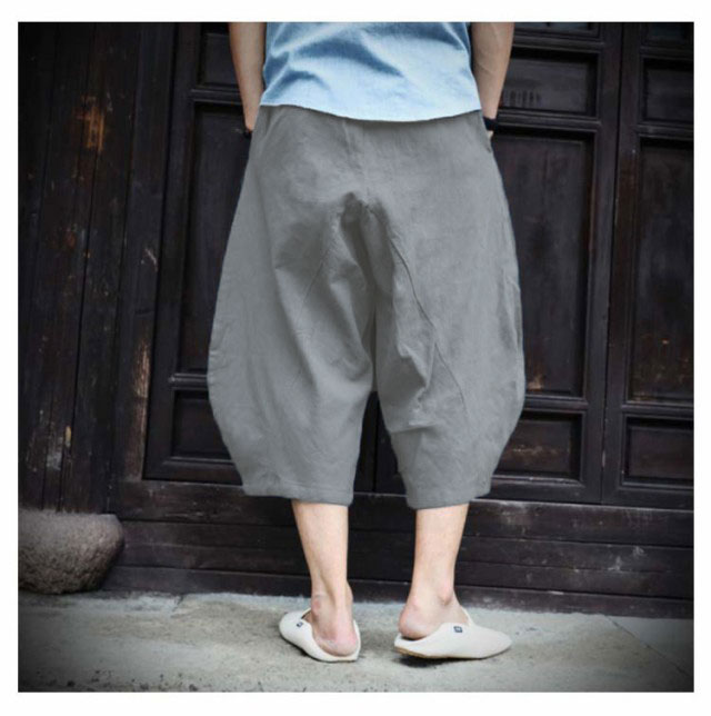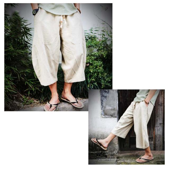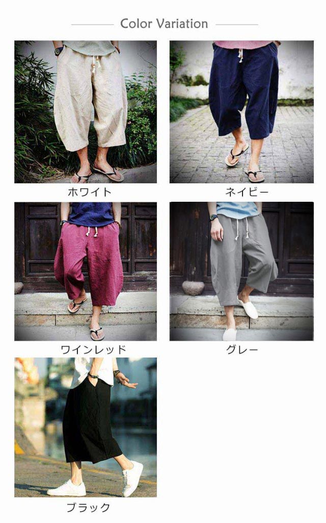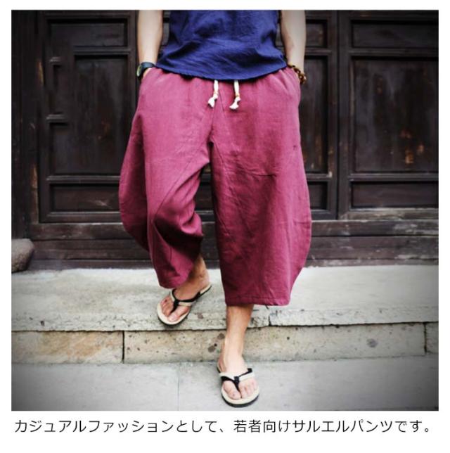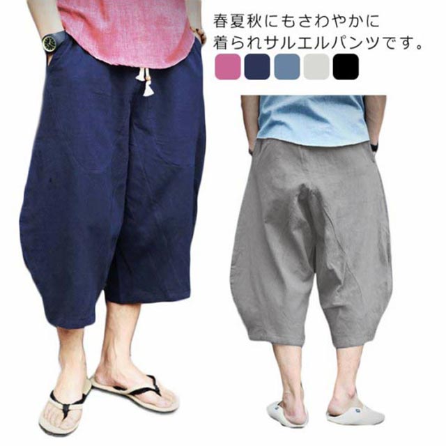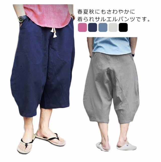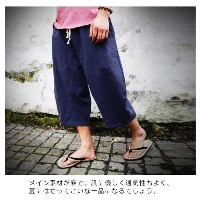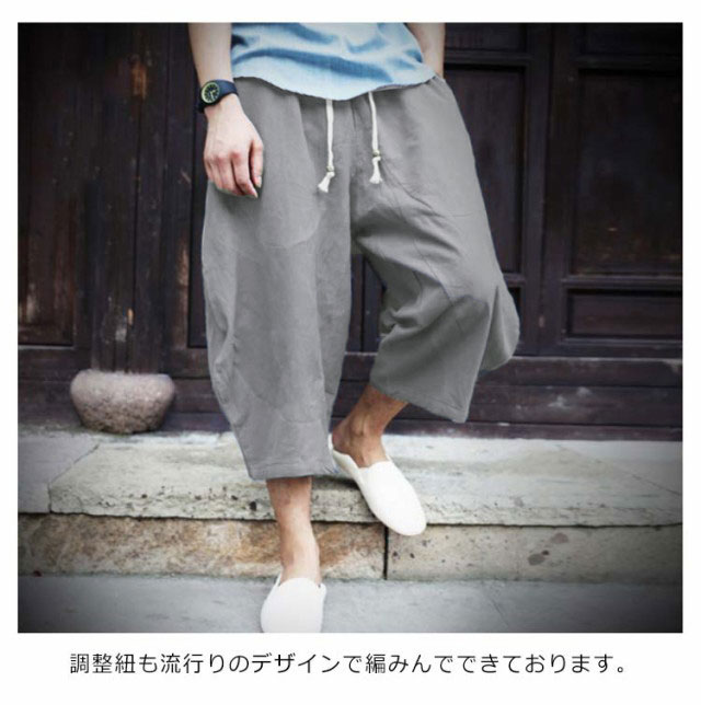 送料無料 7分丈パンツ クロップドパンツ 綿麻 メンズ 送料無料 袴パンツ サルエルパンツ アンクル丈 ボトムス 無地 春夏 イージーパンツ カジュアルパンツ ハーフパンツ メンズ リネンパンツ