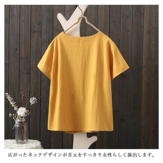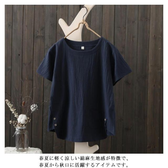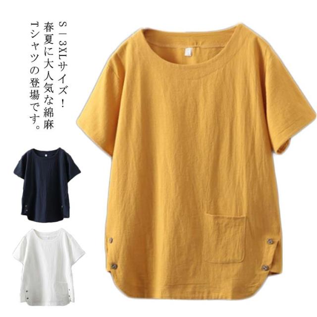 S−3XLサイズ!リネンTシャツ レディース シンプル 半袖 ブラウス 綿麻 トップス リネンブラウス S−3XLサイズ!リネンTシャツ カジュアル服 クルーネック おしゃれ ナチュラル 無地 Tシャツ