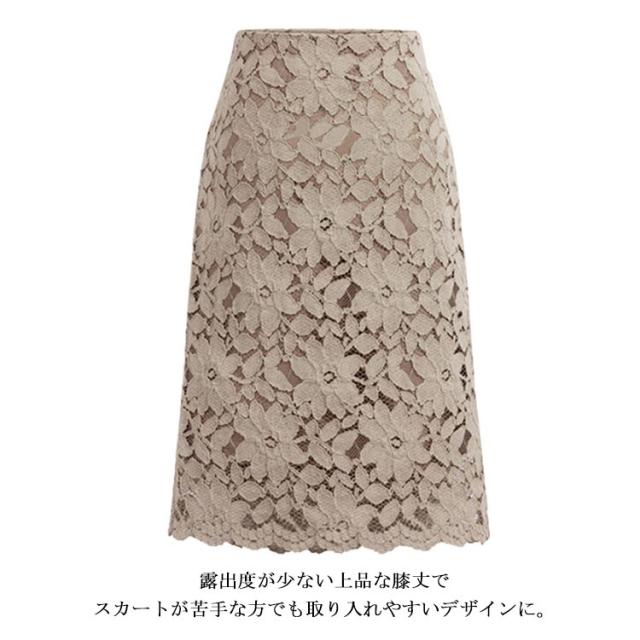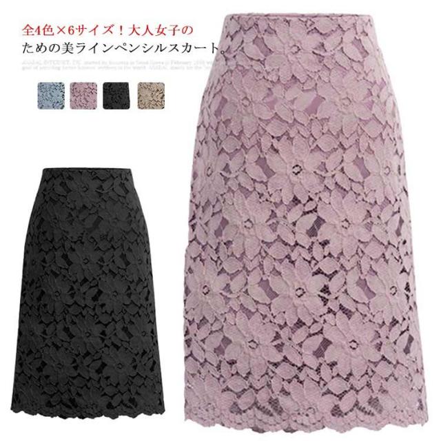 全4色×6サイズ!総レース ペンシルスカート スカート レーススカート 細見え 膝丈 Aライン 花柄 ひざ丈 立体レース レディース 刺繍 フラワー フォーマル キレイめ タイトスカート 大きサイズ 春 夏 全4色×6サイズ!総レース