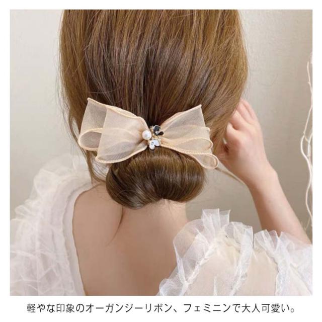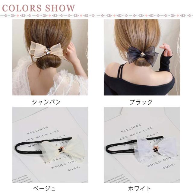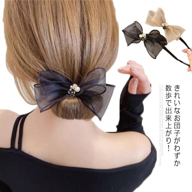 通勤 ヘアアレンジ オーガンジーリボン 就活 髪飾り お団子ヘア メーカー ワイヤー ドーナツ まとめ髪 韓国 ヘアアクセサリー 巧みなお団子 送料無料 20代 30代 送料無料