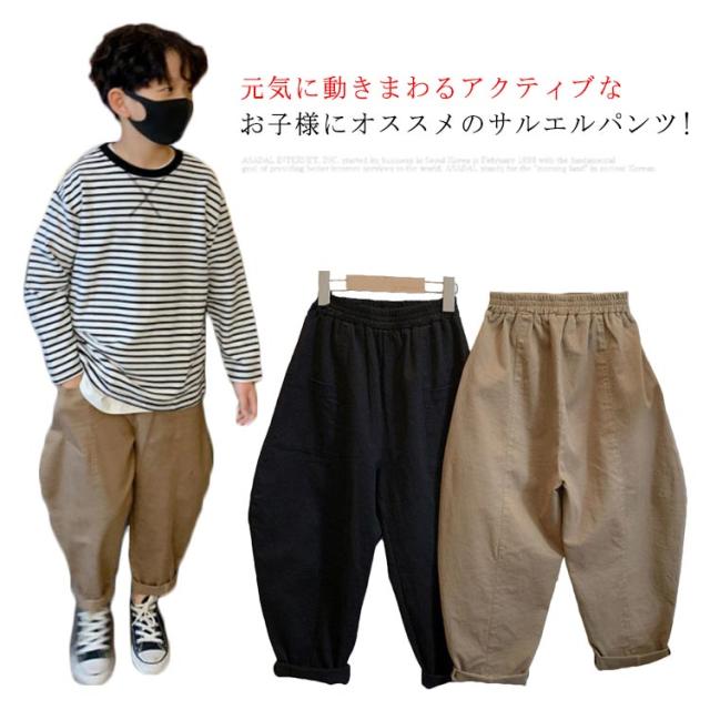 春秋 男の子 サルエルパンツ テーパードパンツ ロングパンツ サルエルパンツ ゆったり ウエストゴム 長ズボン カジュアル ゆったり 柔らかい 無地 動きやすい スポーツ 通園 通学 ボトムス