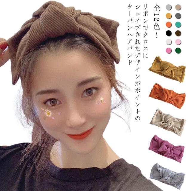 幅広 シンプル 大人っぽい レディース ヘアターバン クロス 送料無料 ヘアアクセサリー ヘアバンド カジュアル ヘアターバン ニット 可愛い 無地 女性 プレゼント リボン