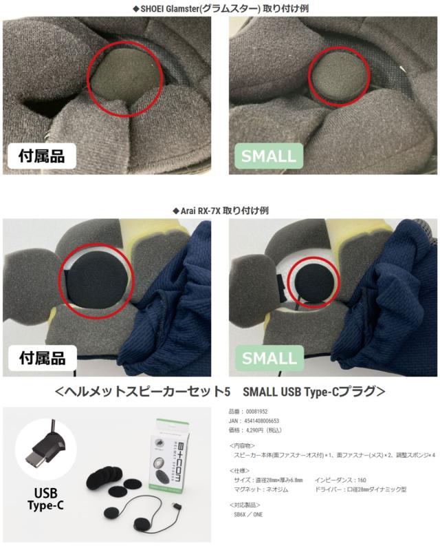 SYGN HOUSE ヘルメットスピーカーセット5 SMALL(スモール) B+COM 史上最小スピーカー!!「耳が痛い」とサヨナラ。B+COM付属のスピーカーに比べ大きさ、厚みが約30%ダウン!《USB Type-Cプラグ》/サインハウス00081952