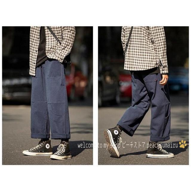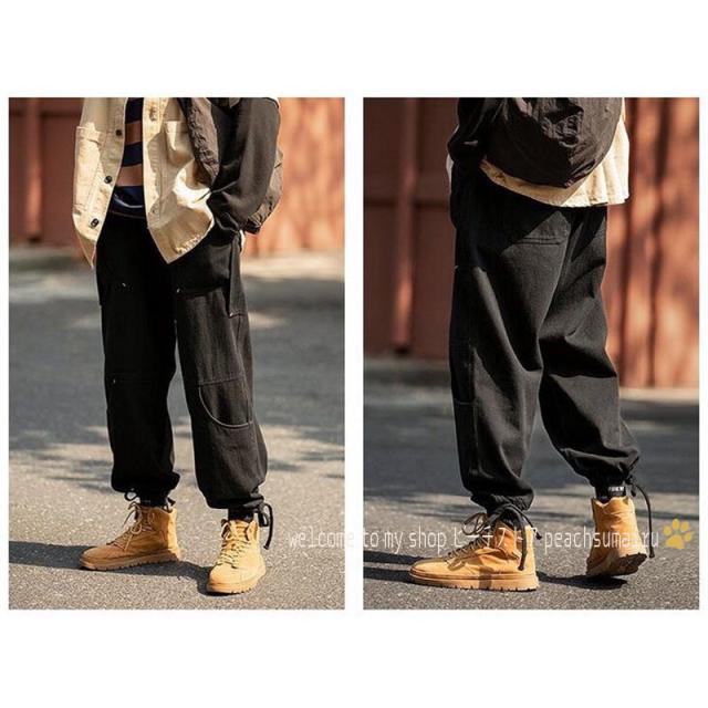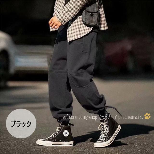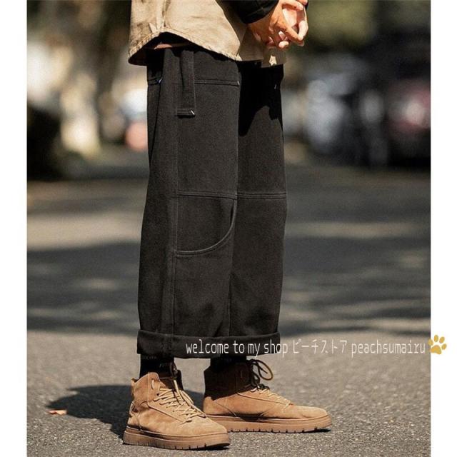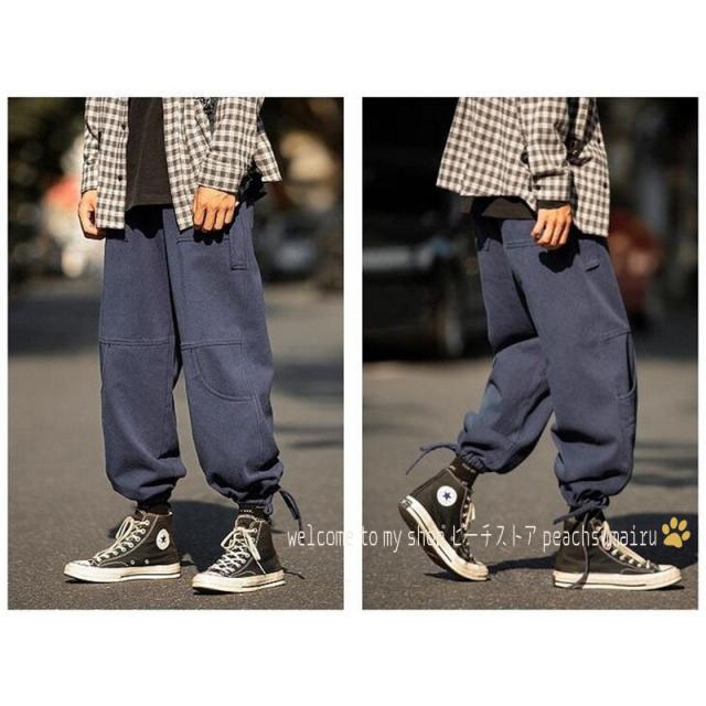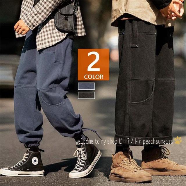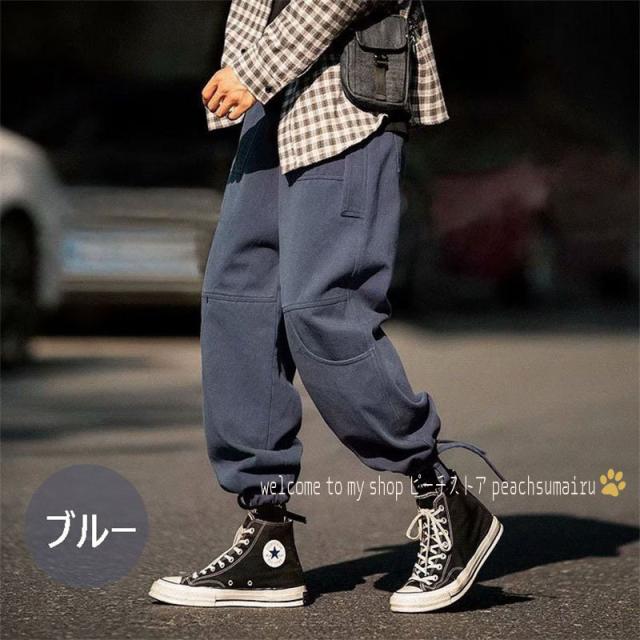 カーゴパンツ メンズ ストレート 裾ドローストリング チノパン サルエルパンツ イージーパンツ 韓国ファッション ストリート系