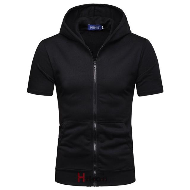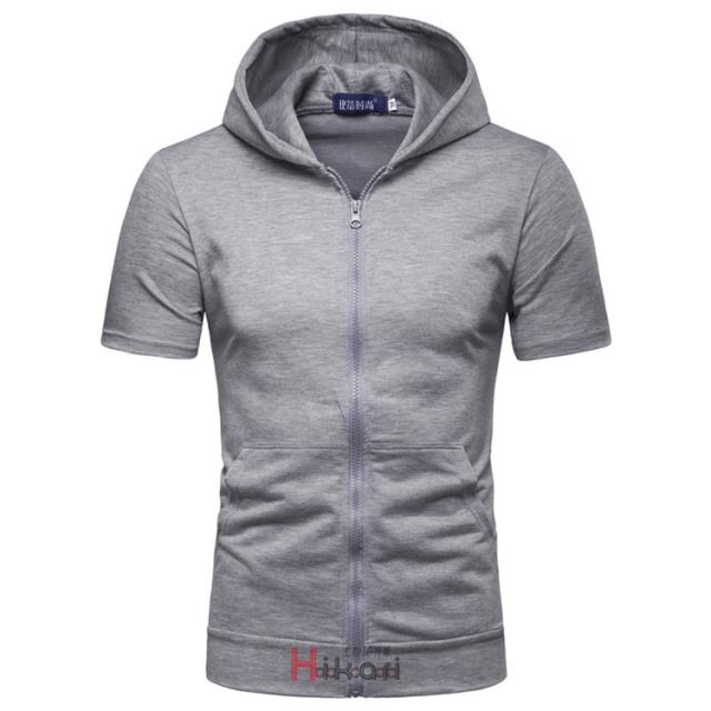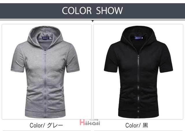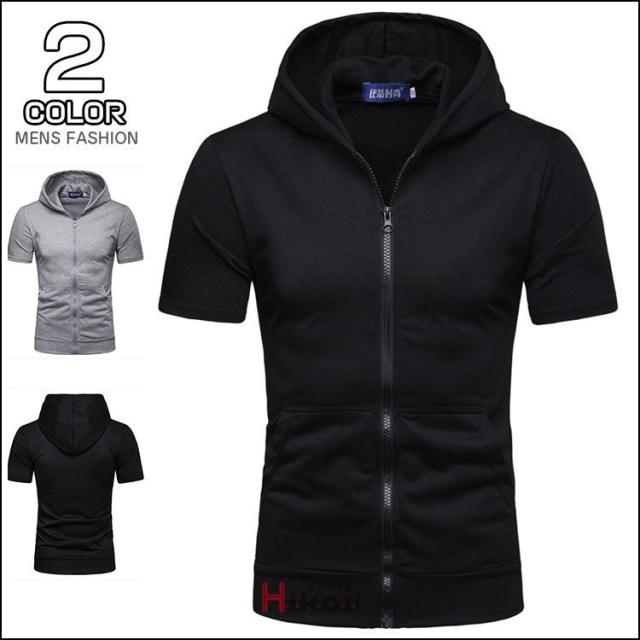ジップアップパーカー メンズ 無地 半袖 トップス 前開き カジュアル ジップアップパーカー スポーツ フード付き