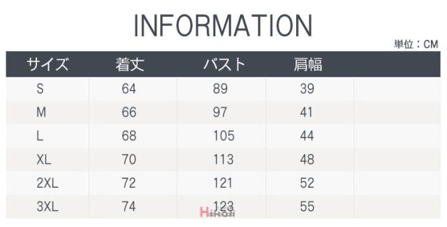 | サイズ | S M L XL 2XL 3XL |