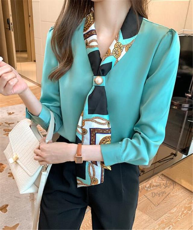 ブラウス ブラウス リボンブラウス 春秋 長袖ブラウス 40代 上品 オフィス オシャレ レディース 韓国風 通勤 OL 大きいサイズ 大人