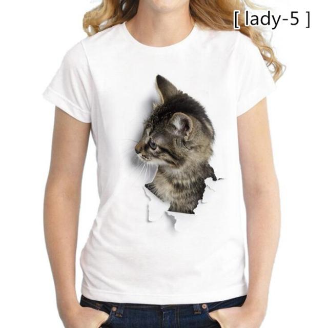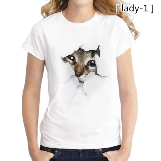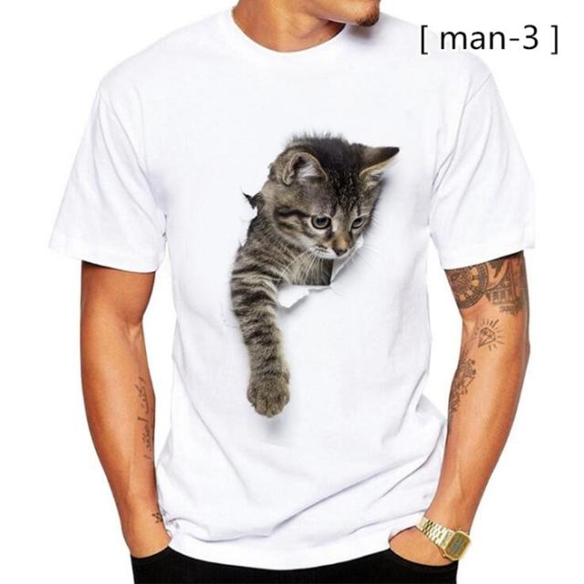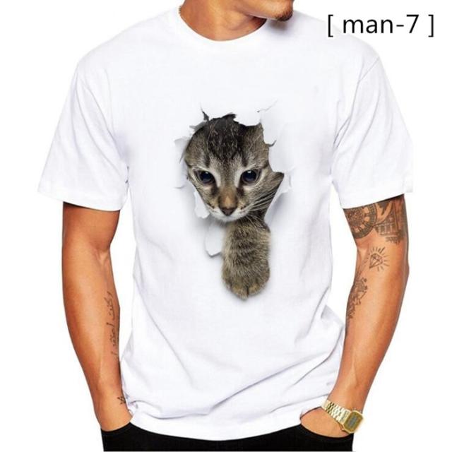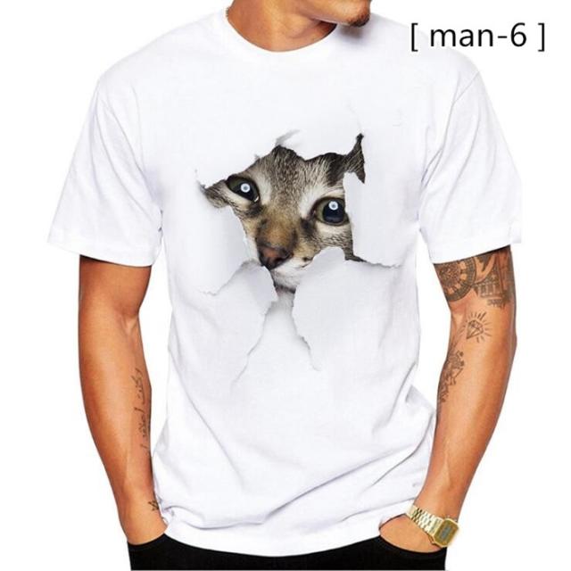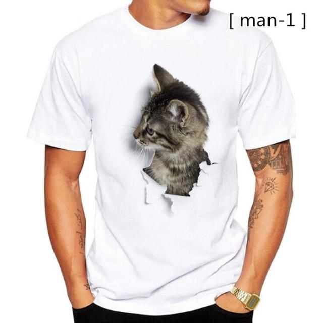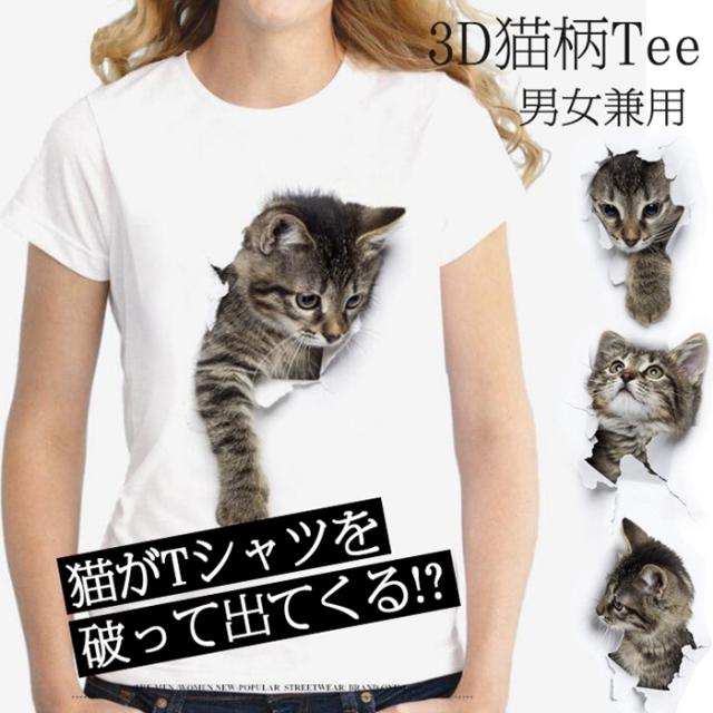 男女兼用 薄手 猫 Tシャツ 可愛い 3D メンズ 可愛い ねこ 白 レディース 面白 おもしろ かわいい トリックアート