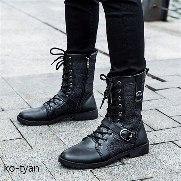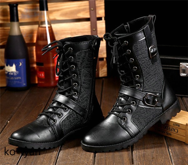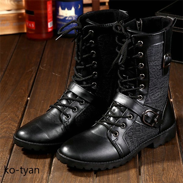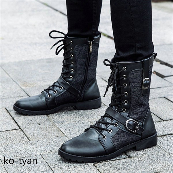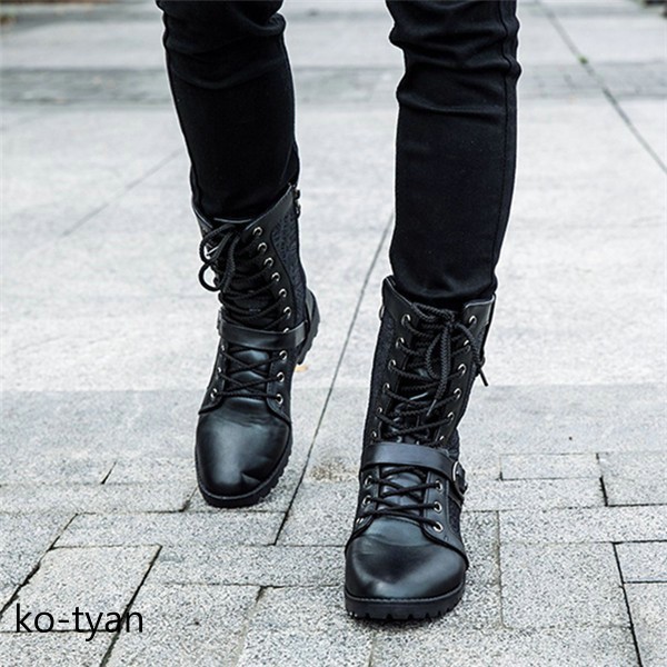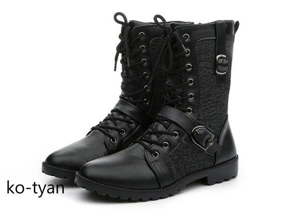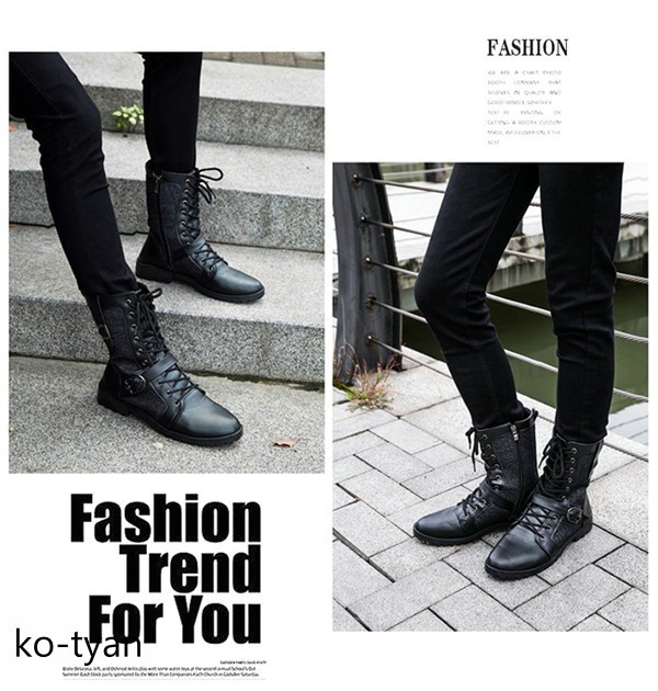 サイドジップ 編み上げブーツ ベルト飾り 黒 バイク ワークブーツ 秋冬 レースアップブーツ ショート ショートブーツ カジュアル 編み上げブーツ 靴