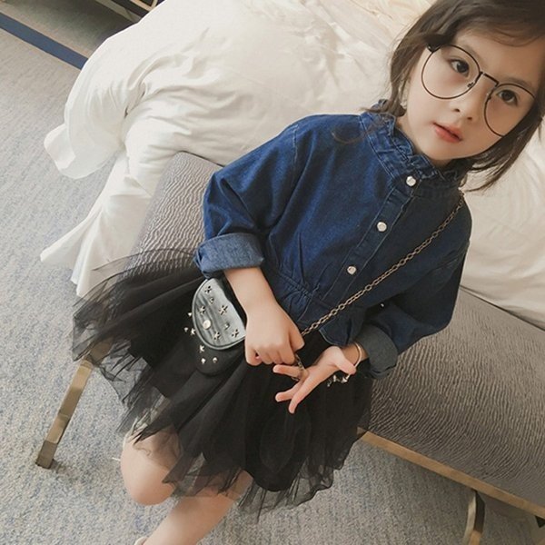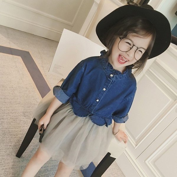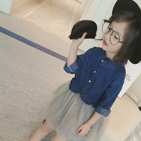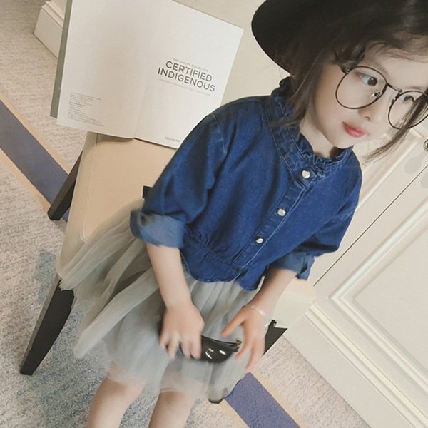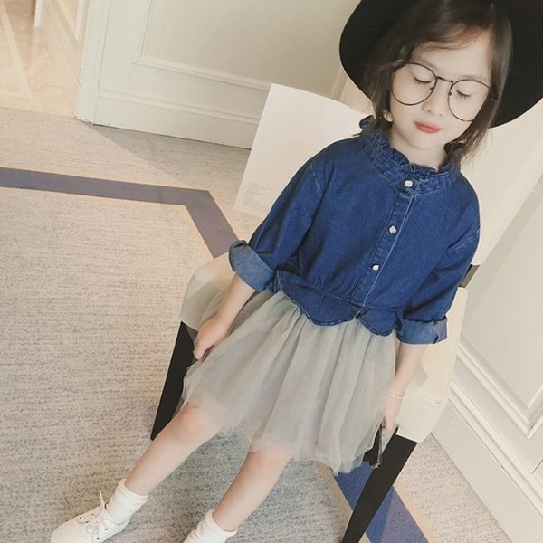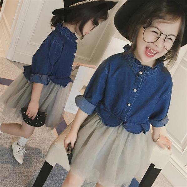 キッズ 女の子ワンピース 子供服 子供服 ワンピース 襟付き 長袖 韓国 ジュニア デニム dress スーツ 子供服 通学着 通園着 フォーマル