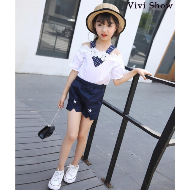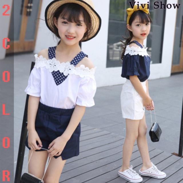半袖 ハーフパンツ セットアップ 夏 子供服 キッズ 女の子 ブラウス Tシャツ ショートパンツ 上下セット 半ズボン ジュニア 可愛い 子供服 カジュアル