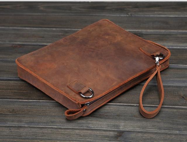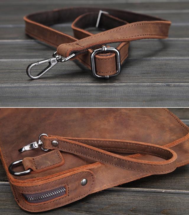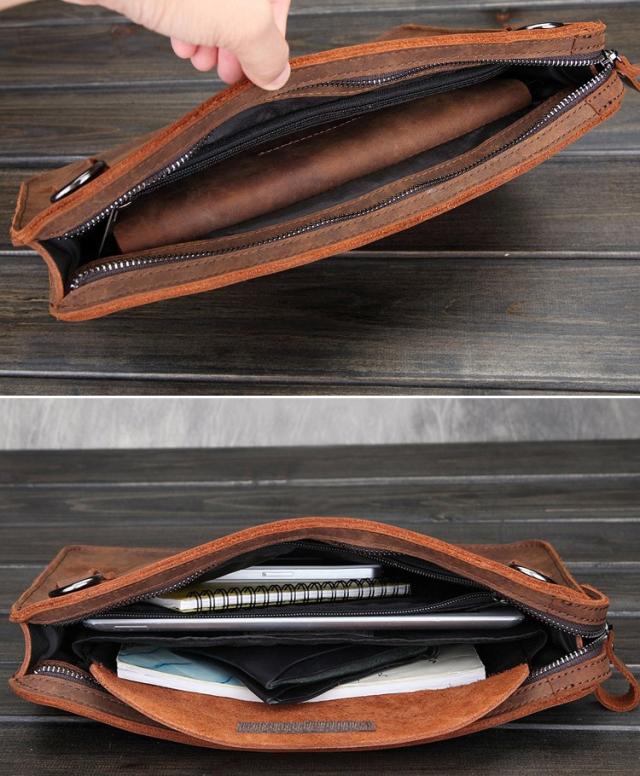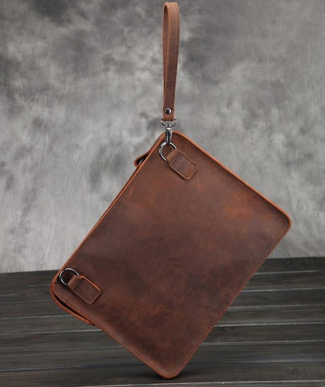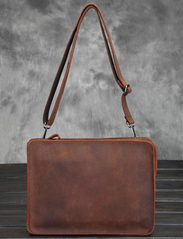 セカンドバッグ ブラウン レザー 本革 チェーン付き クラッチバッグ ショルダー付き セカンドバッグ 小型 ショルダーバッグ オーガナイザー