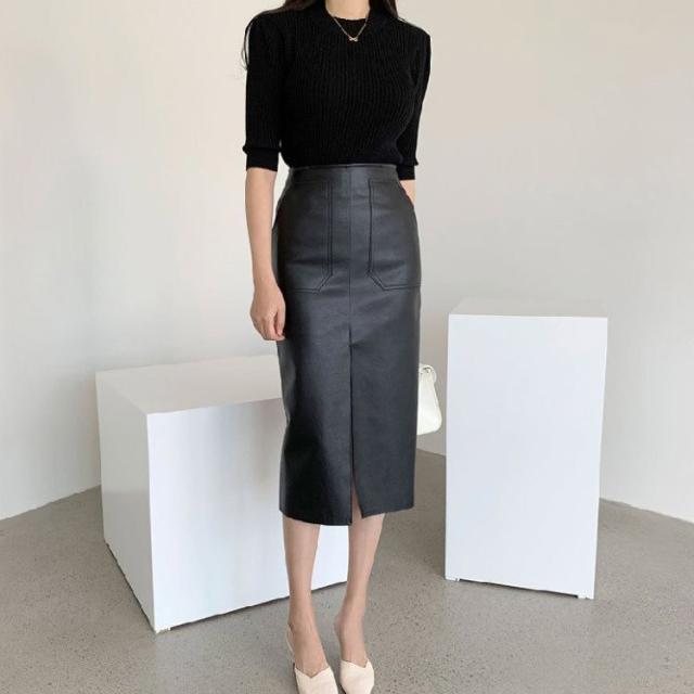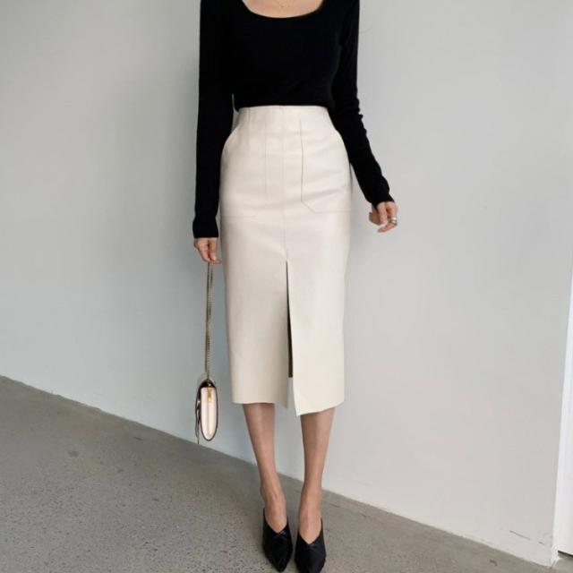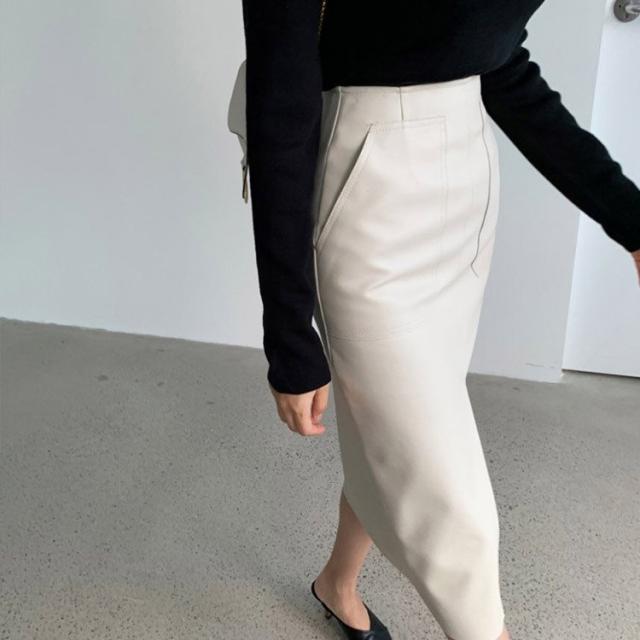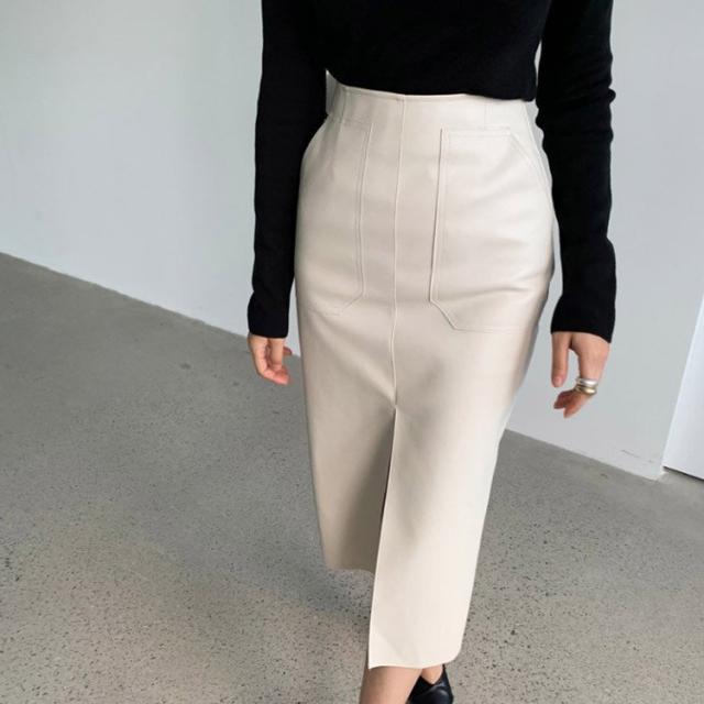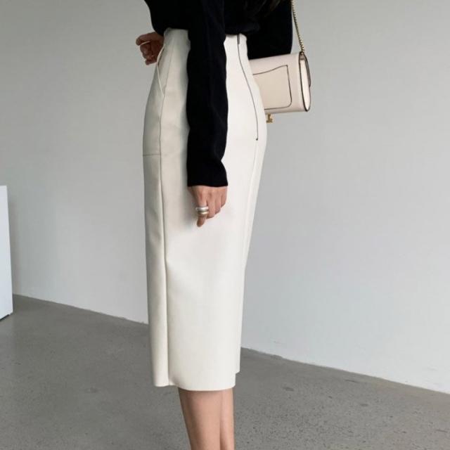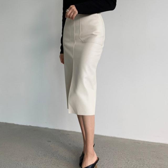 レザースカート タイト セミロング丈 タイトスカート ミモレ丈 膝丈 黒 レザースカート 白 レザー スカート 韓国ファッション