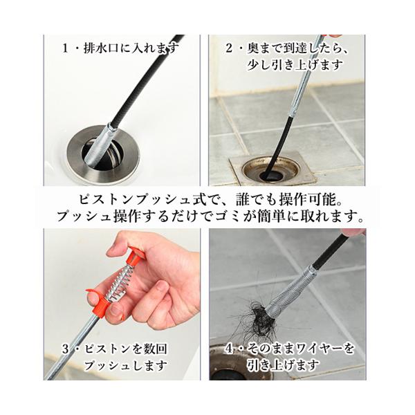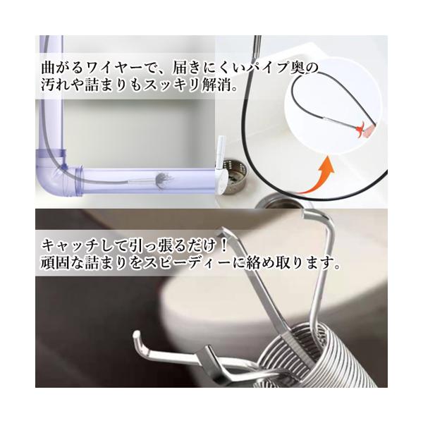 ・グニャグニャ曲がるワイヤーで、届きにくいパイプ奥の汚れや詰まりもスッキリ解消!