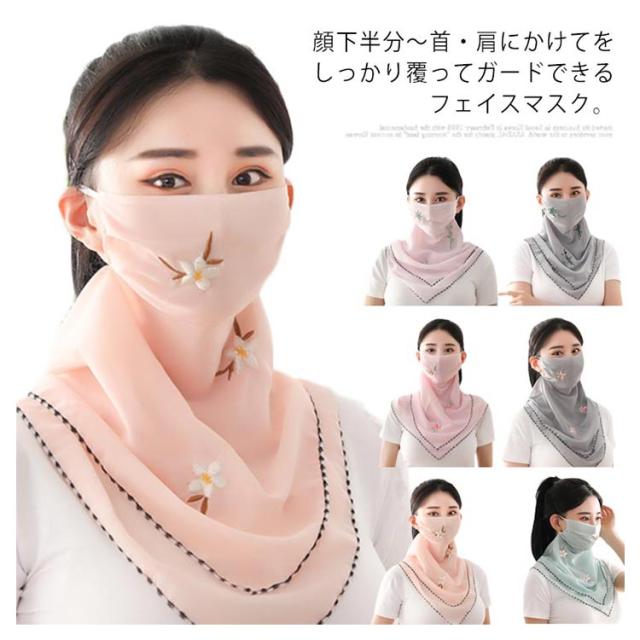 洗える 日焼け防止 フェイスカバー ネックガード マスク 薄手 夏用 UVカット 花粉症対策 バンダナ 紫外線対策 マスク 通気性