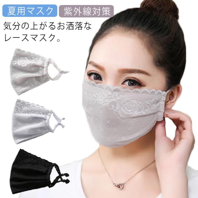 花柄 レースマスク 透け感 夏用マスク 洗える 紐調節 通気性 マスク 日焼け防止 繰り返し使える 紫外線対策 予防対策 花粉対策 きれいめ 可愛い