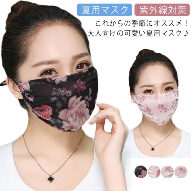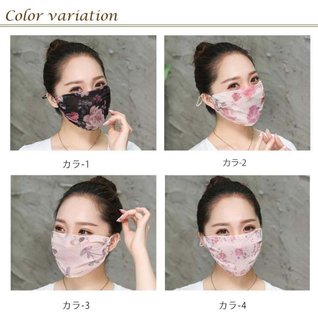 紫外線対策 布マスク マスク マスク 紐調節 レディース 接触冷感 花柄マスク 薄手 2重構造 夏用 日焼け防止 繰り返し使える 水洗いOK