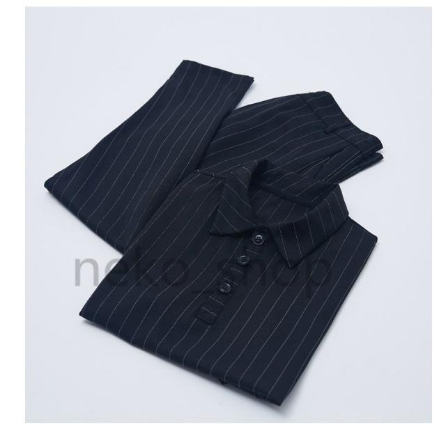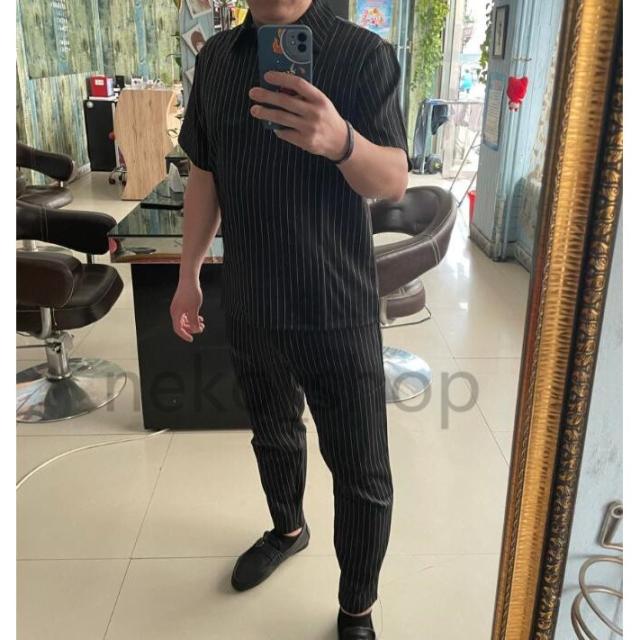 半袖シャツ+ロングパンツ カジュアル セットアップ ストライプ柄 韓国風 韓国風 ゆったり メンズ 紳士服 通勤 オフィス 20代 30代 40代 涼しい