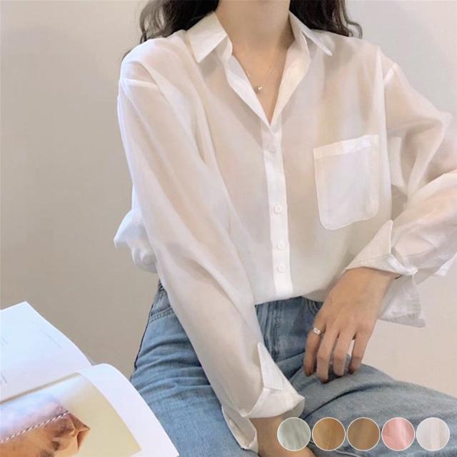 ブラウス ブラウス シースルーブラウス 透け感 シースルー シフォン 涼しい 長袖 ゆったり オーバーサイズ 大きめ 韓国ファッション