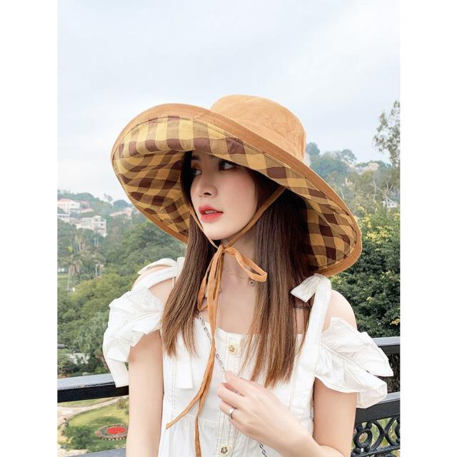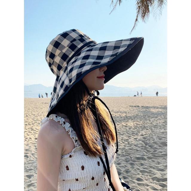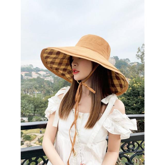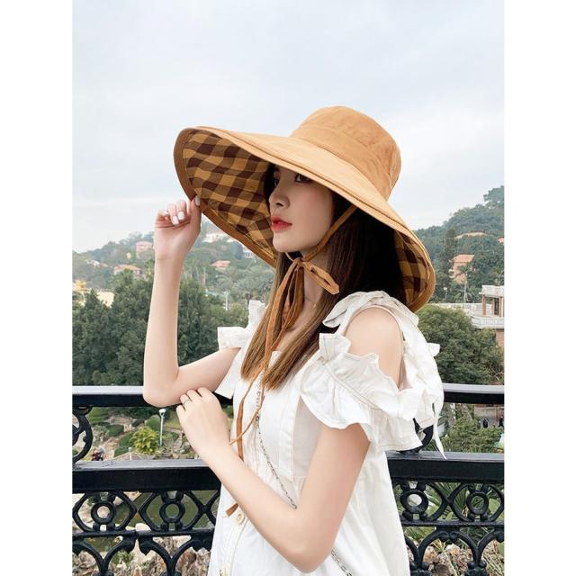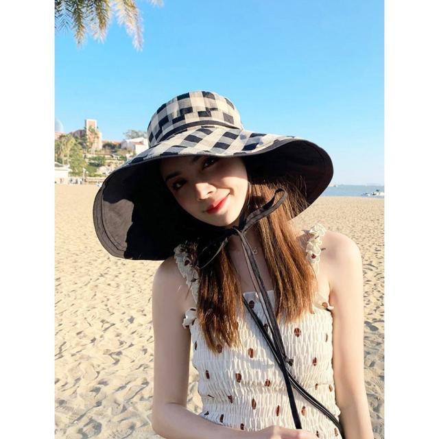帽子 レディース 帽子 つば広 チェック柄 あご紐 フィッシャーマンズハット uvカットハット レディース アウトドア 夏 ビーチ 日焼け防止ぼうし