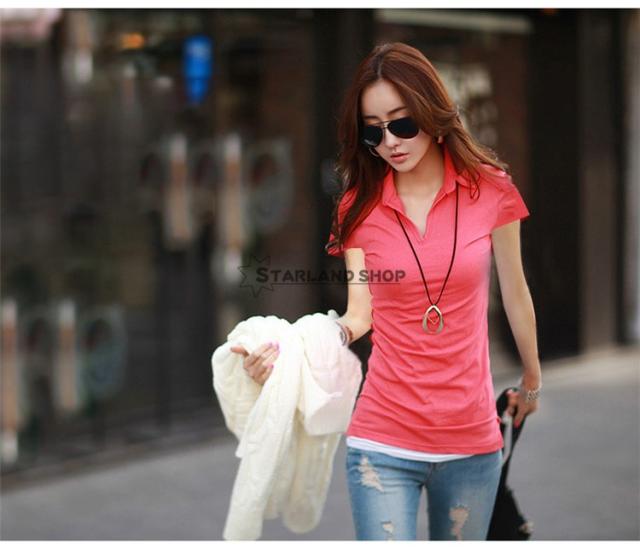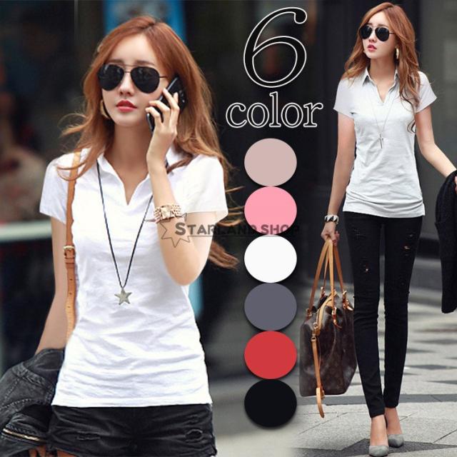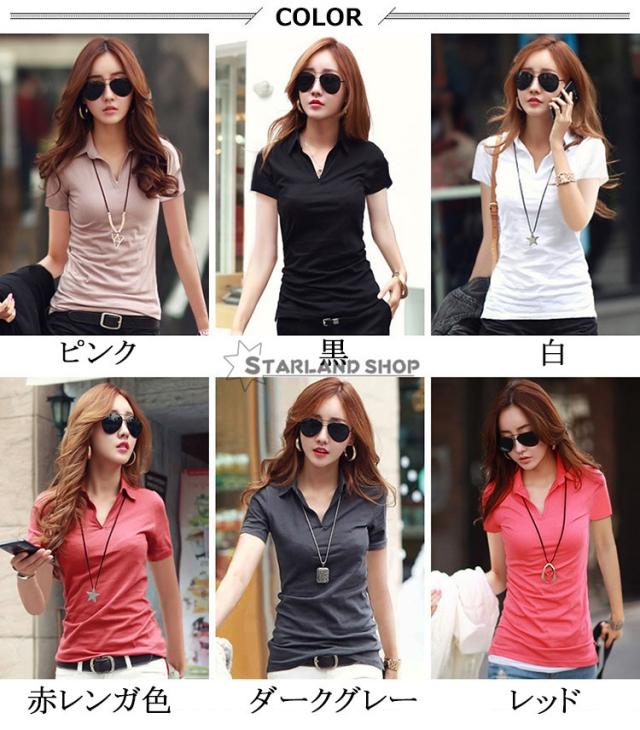 ポロシャツ 半袖 ポロシャツ レディース 細身 ポロシャツ カットソー 折襟tシャツ Vネック スリム ゴルフ