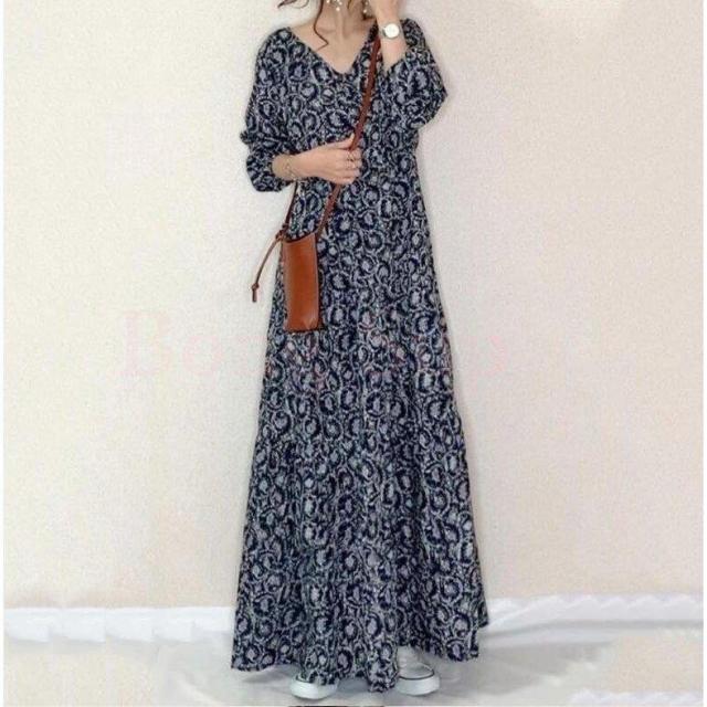 レディース 花柄 マキシワンピース ロング vネックワンピ マキシワンピース 大人可愛い 2021