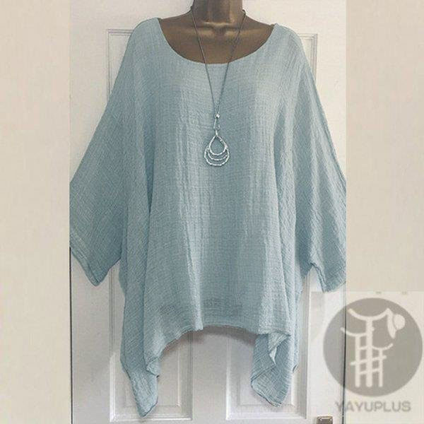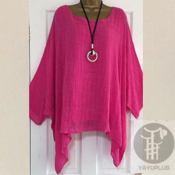 Tシャツドルマンスリーブ無地 大きいサイズレディーストップス 七分袖ゆったり体型カバー