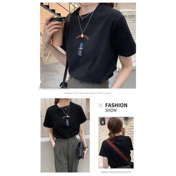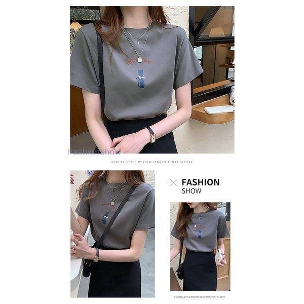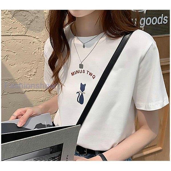 半袖Tシャツ トップス レディース ねこ柄 可愛い 半袖Tシャツ 猫柄 カジュアル 女性用 薄手 カットソー 半袖 夏 キュート