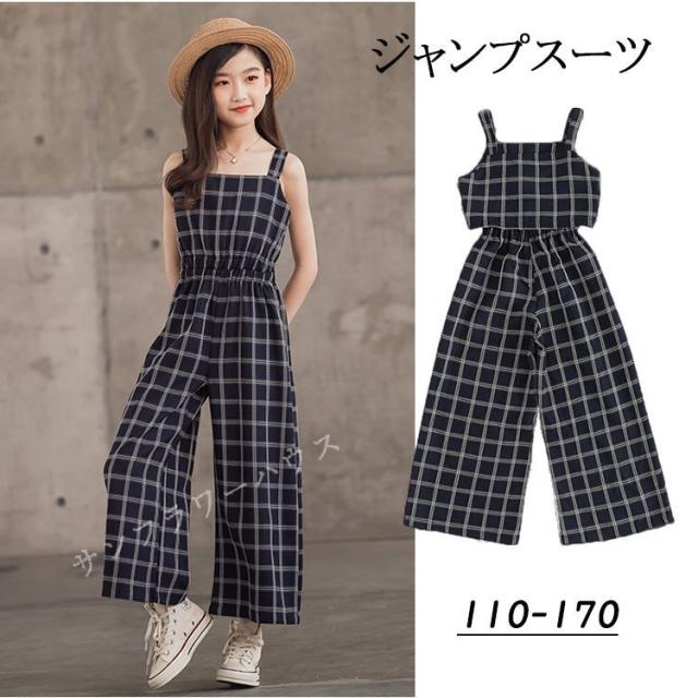 カジュアル キッズ 女の子 サロペット シンプル ジャンプスーツ チェック 夏 可愛い おしゃれ ゆったり キッズ服 ジャンプスーツ 春 海 旅行 韓国
