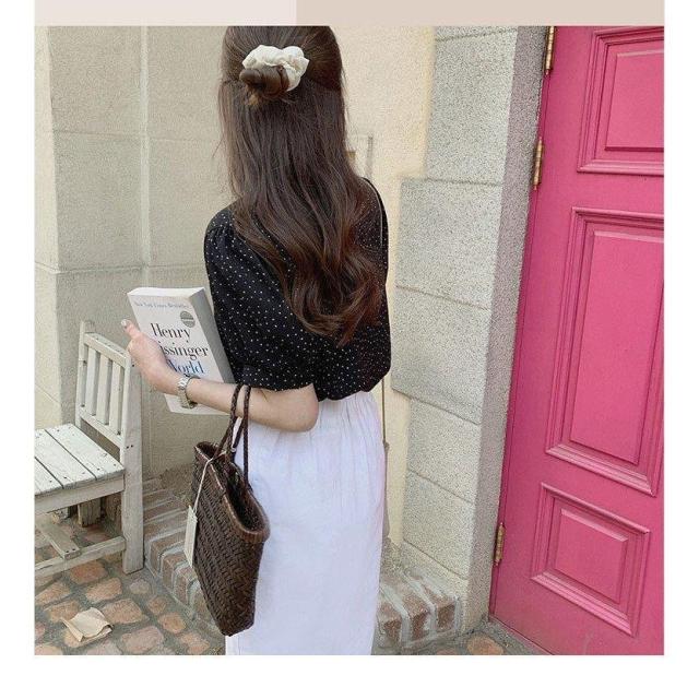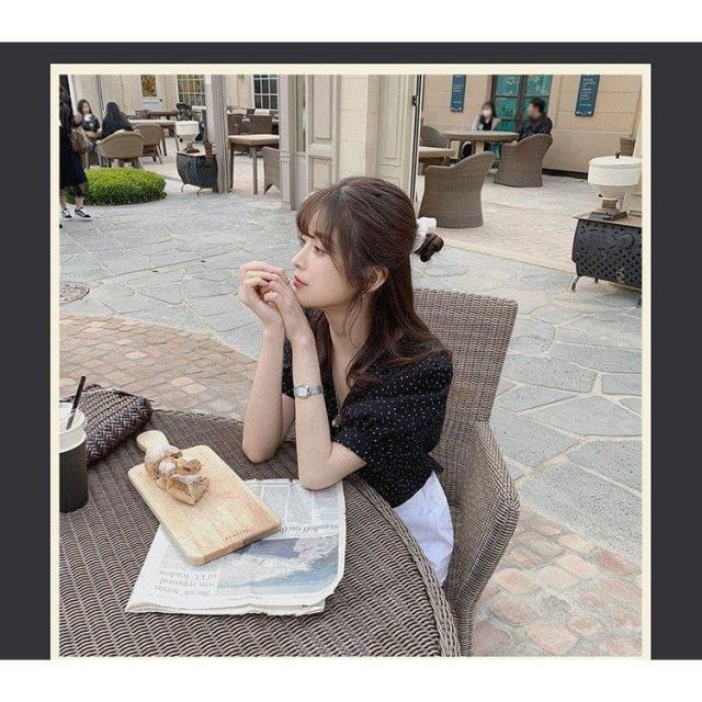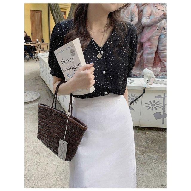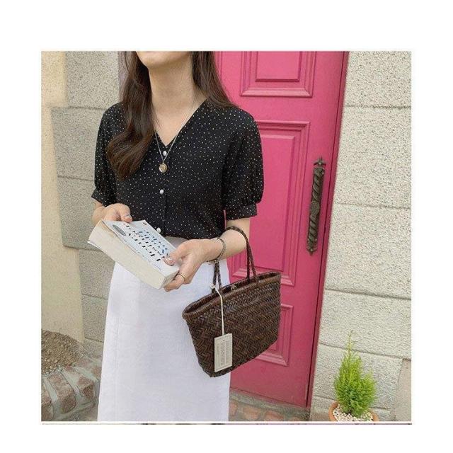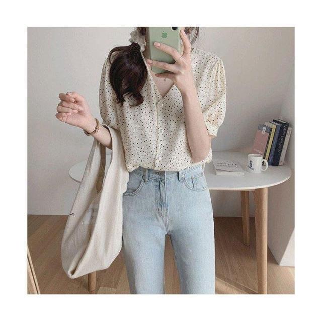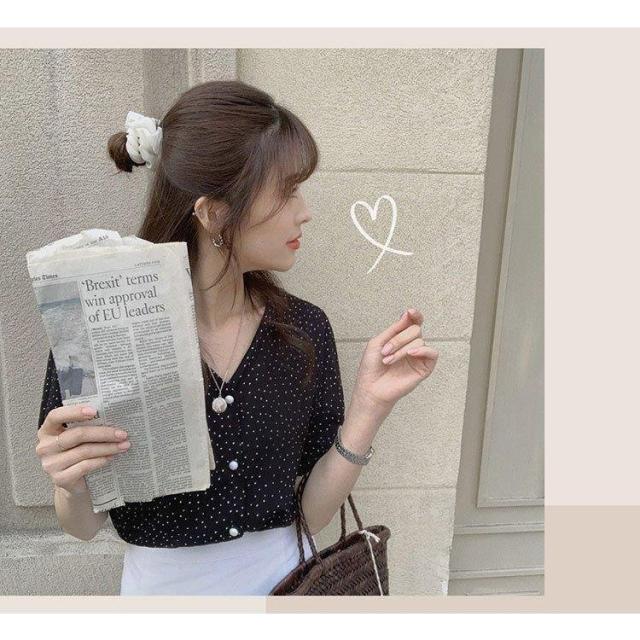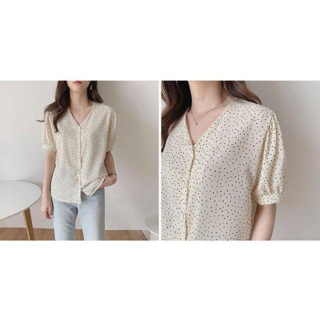 ドット柄 ブラウス 韓国風 40代 春夏 Vネック レディース きれいめ 半袖 通勤 シフォン トップス オフィス 30代 50代 シャツ オシャレ 大人